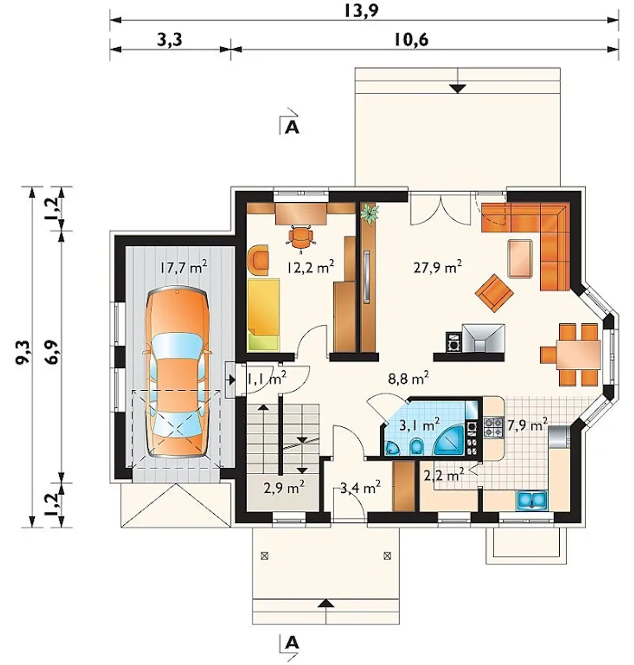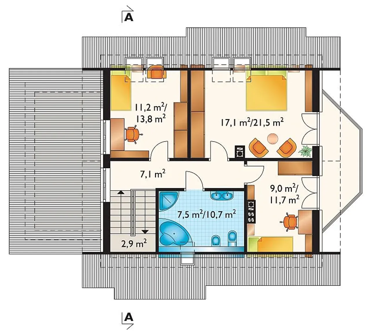- elewacje - pokazują dokładny wygląd domu od frontu, z tyłu i z boków