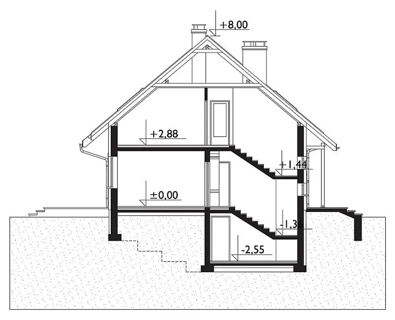 - przekroje - pokazują wszystkie elementy budynku po przecięciu go wzdłuż lub w poprzek od dachu do fundamentów tj. warstwy podłogi, stropów i dachu