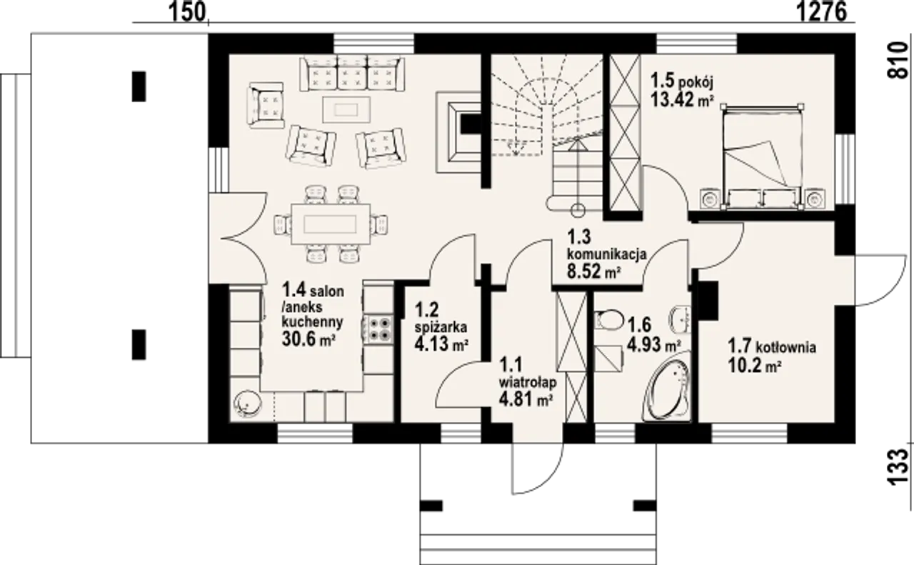 4. Salon z aneksem kuchennym | 30,60 m² |