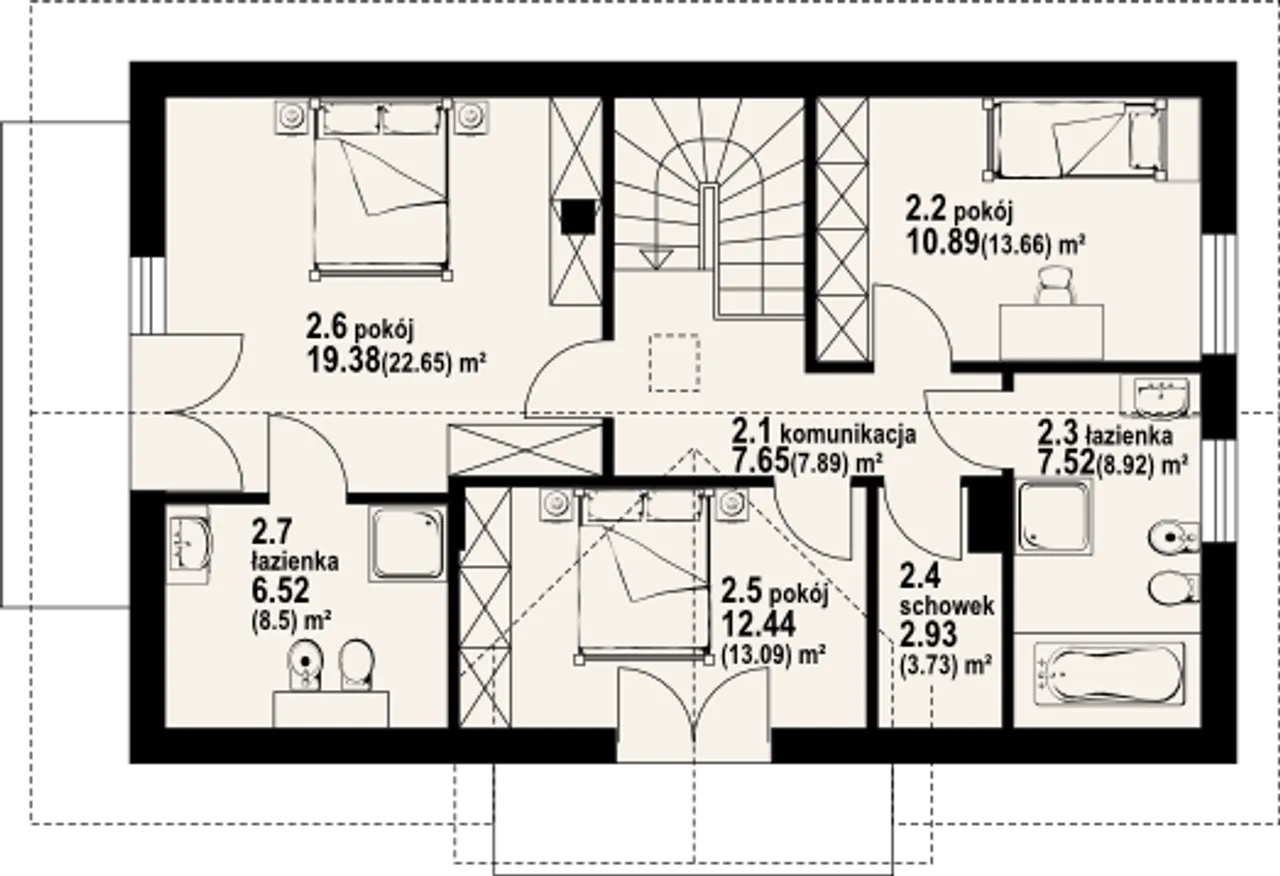 - rzutów kondygnacji użytkowych (parteru i jeśli występują: poddasza, piętra, piwnic)