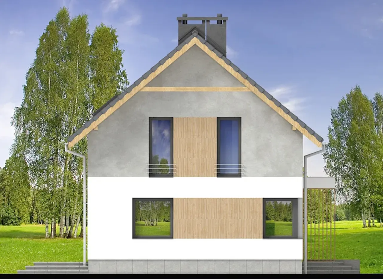 Projekt domu Chili wyróżnia się nowoczesną sylwetką z dwuspadowym dachem, którego kalenica biegnie równolegle do drogi. Drewniana konstrukcja dachu przykryta dachówką betonową lub ceramiczną pozwala na swobodny wybór materiałów pasujących do Twojej wizji. Solidny, monolityczny strop zapewnia stabilność, a ściany z pustaków ceramicznych to doskonałe parametry termoizolacyjne.