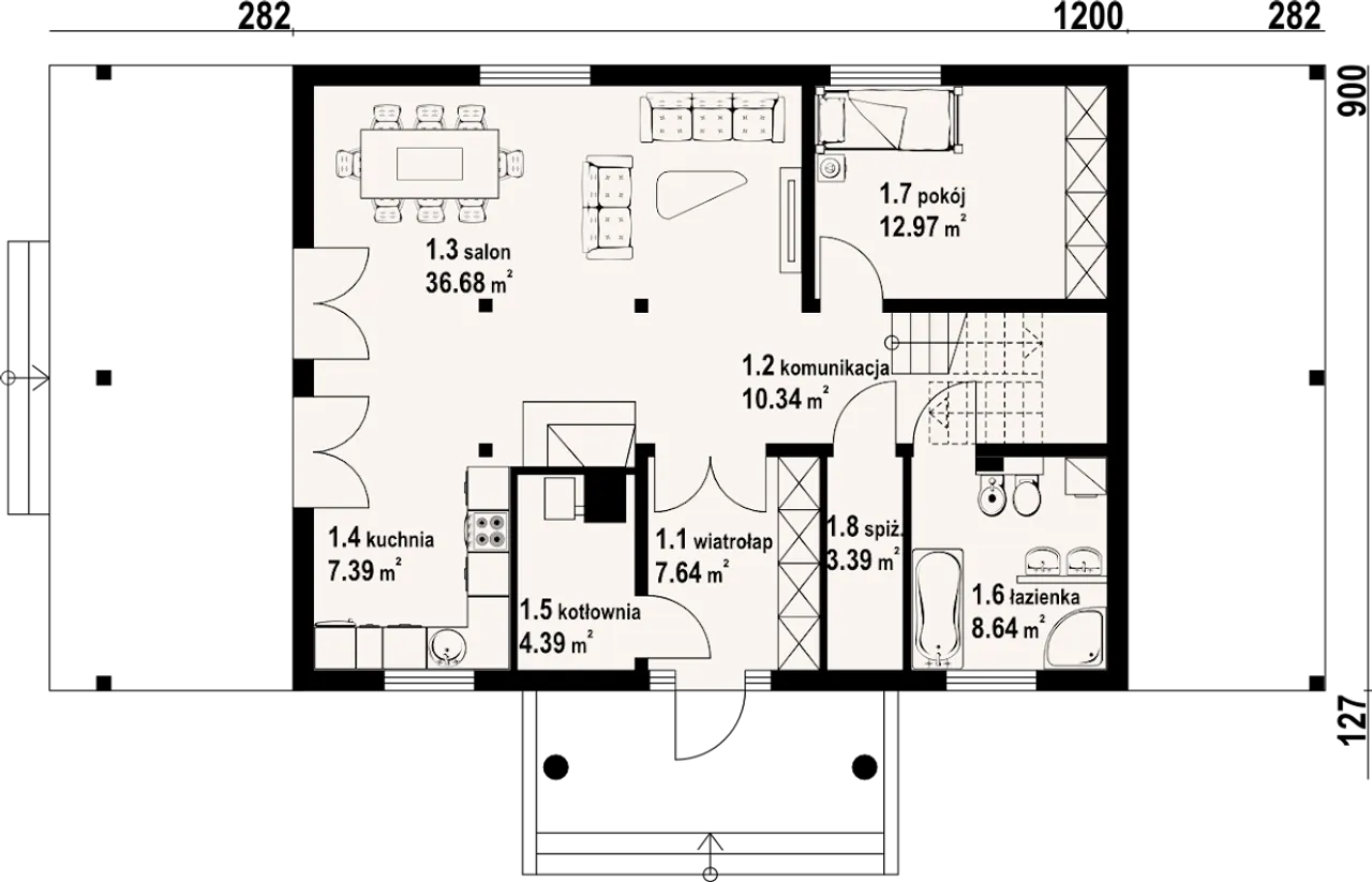 Projekt prezentuje doskonałą wizję współczesnego i funkcjonalnego domu, atrakcyjny dla każdego, kto szuka idealnego miejsca do życia. Możemy zobaczyć tu bezproblemowe połączenie nowoczesności z tradycją.