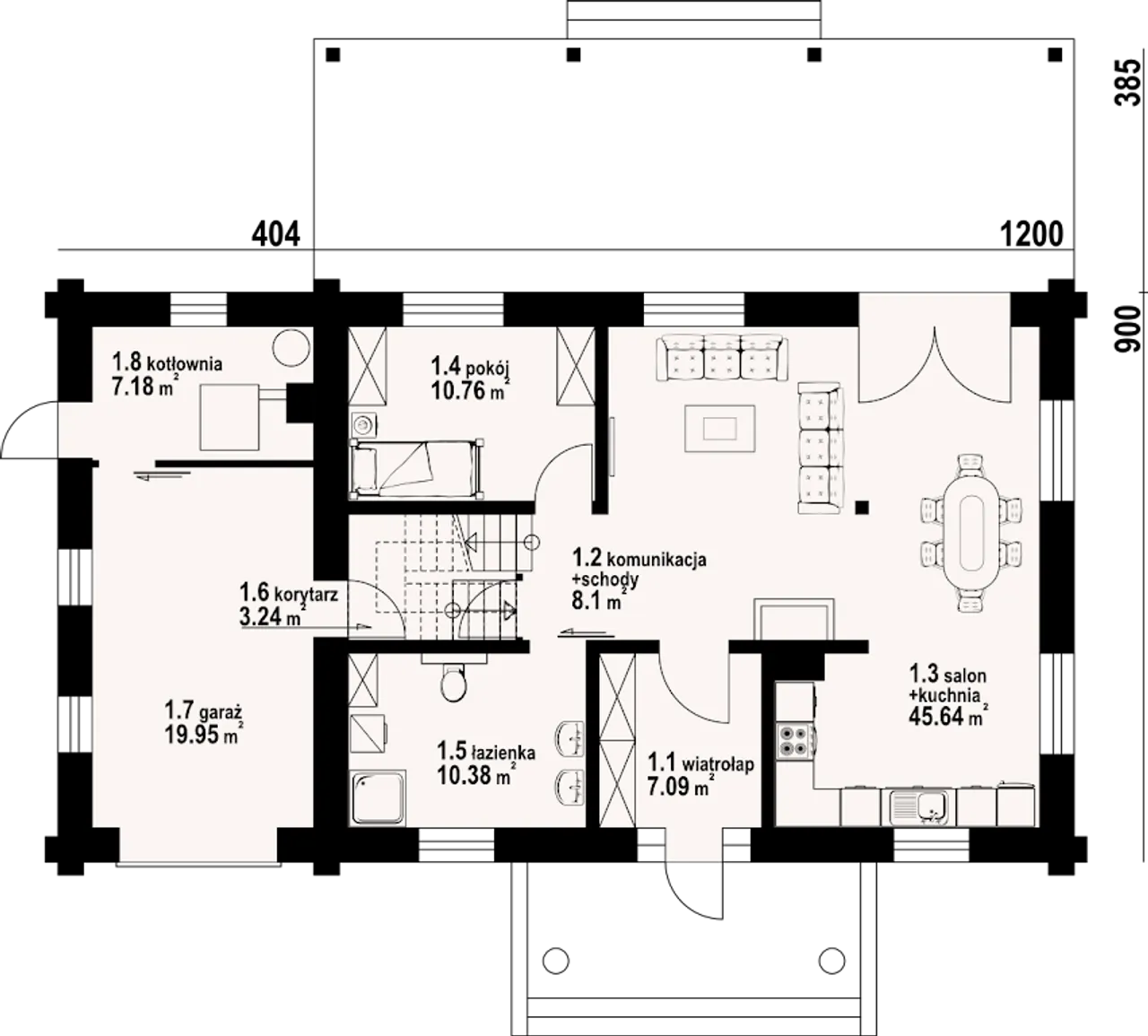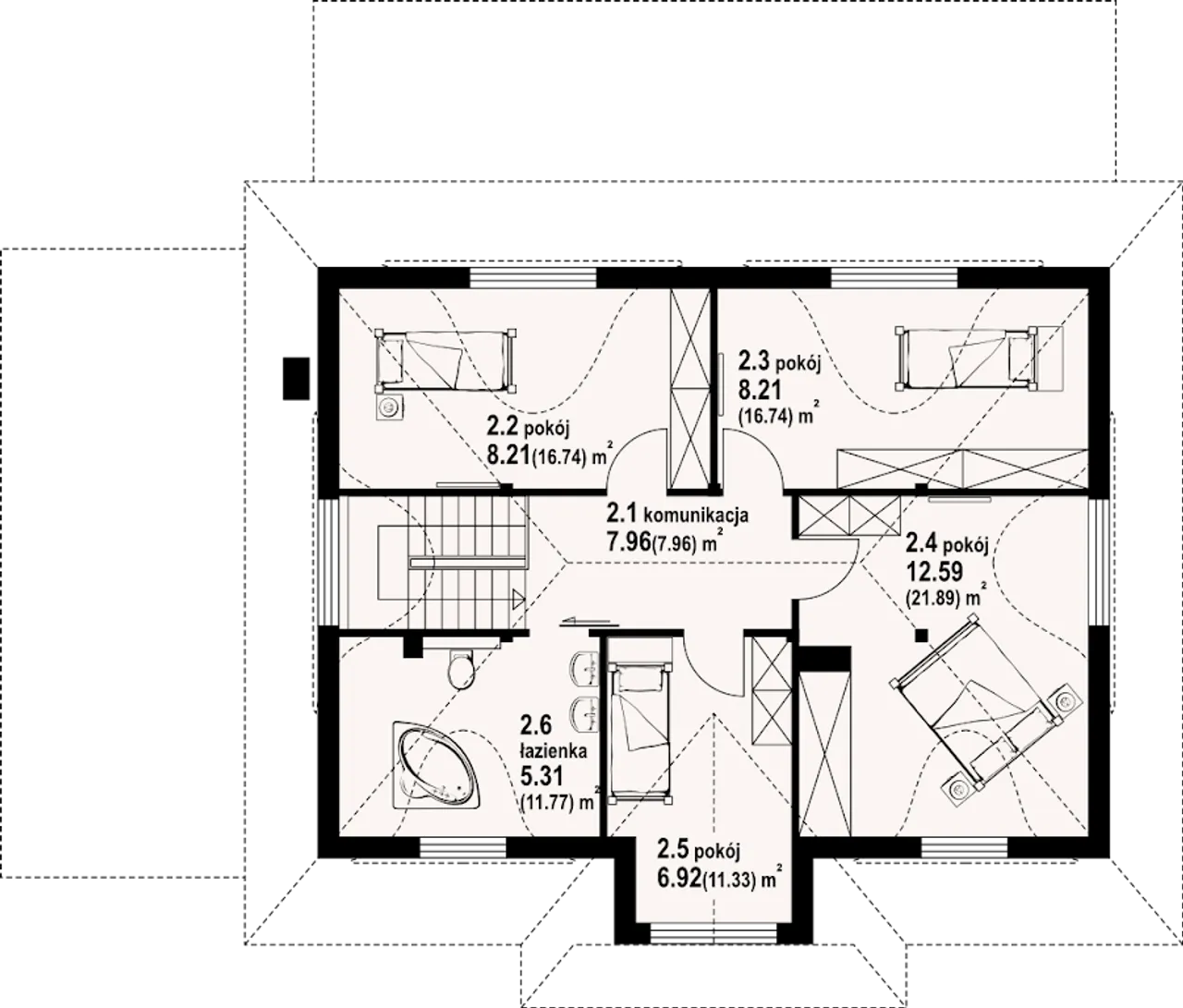 Wypełnij formularz i otrzymaj rysunki w pdf z dokładnymi wymiarami budynku i pomieszczeń (długość, szerokość, wysokość) dla projektu Chmielniki małe dw 67