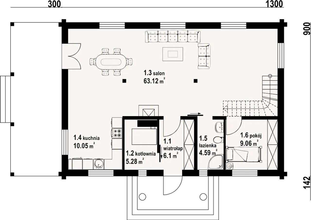 Wypełnij formularz i otrzymaj rysunki w pdf z dokładnymi wymiarami budynku i pomieszczeń (długość, szerokość, wysokość) dla projektu Chmielno dw