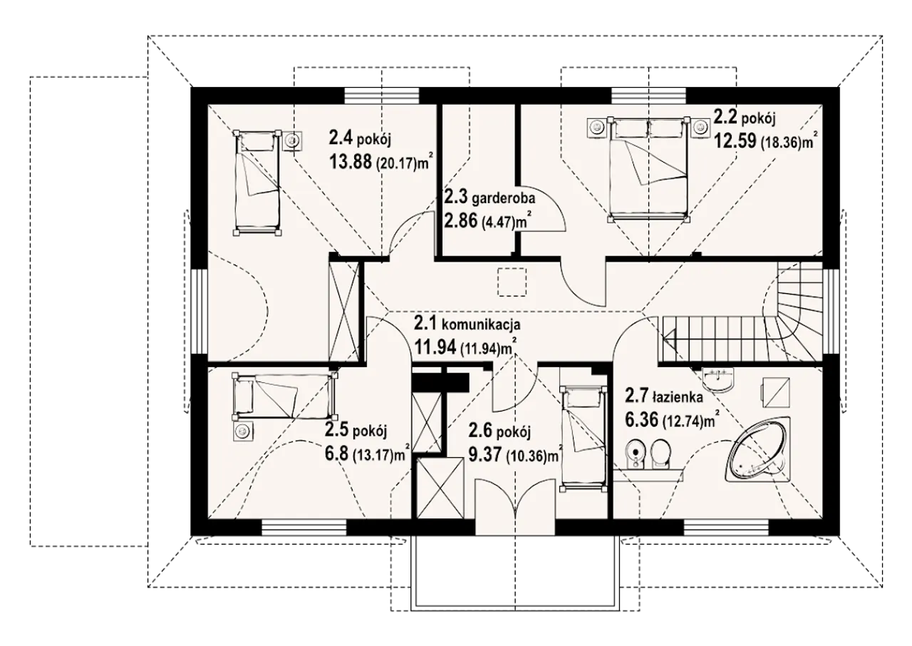 - rzutów kondygnacji użytkowych (parteru i jeśli występują: poddasza, piętra, piwnic)