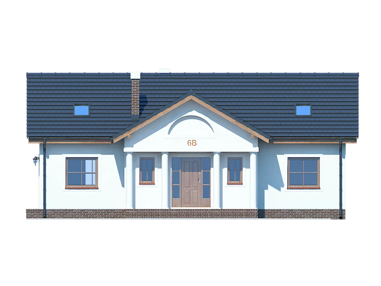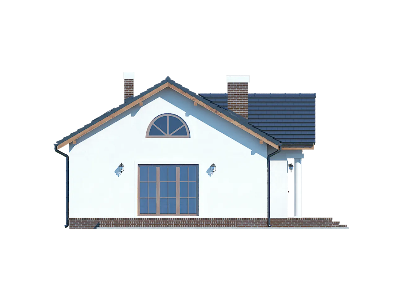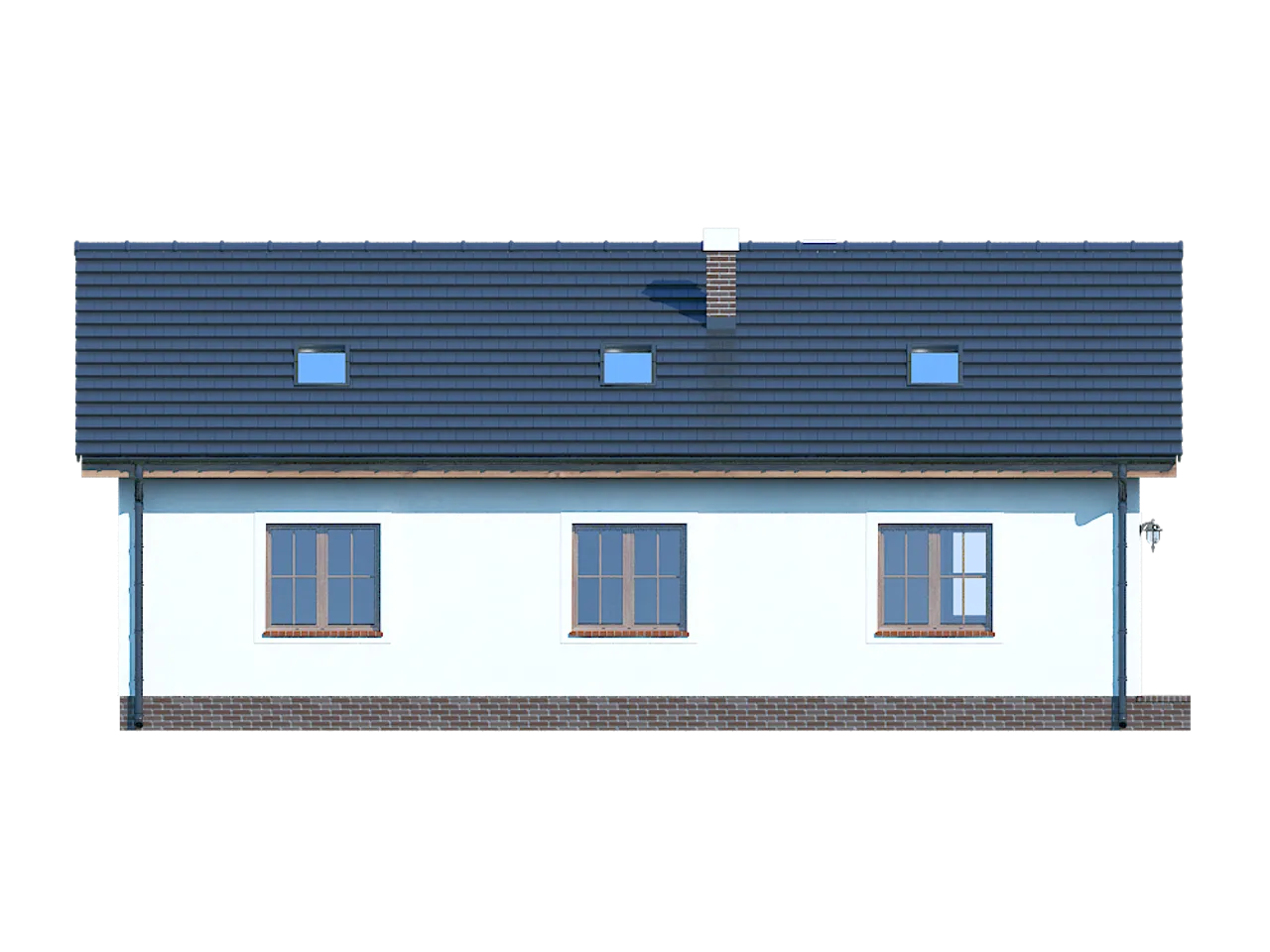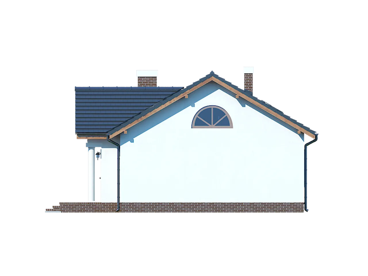 Gotowy projekt domu chmielów autorstwa pracowni Dom-Projekt to dom całoroczny bez garażu. Projekt chmielów charakteryzuje się dachem dwuspadowym o kącie nachylenia 30 st. Gotowy projekt domu chmielów nie posiada piwnicy oraz posiada kominek.