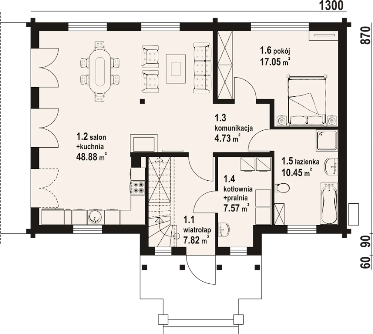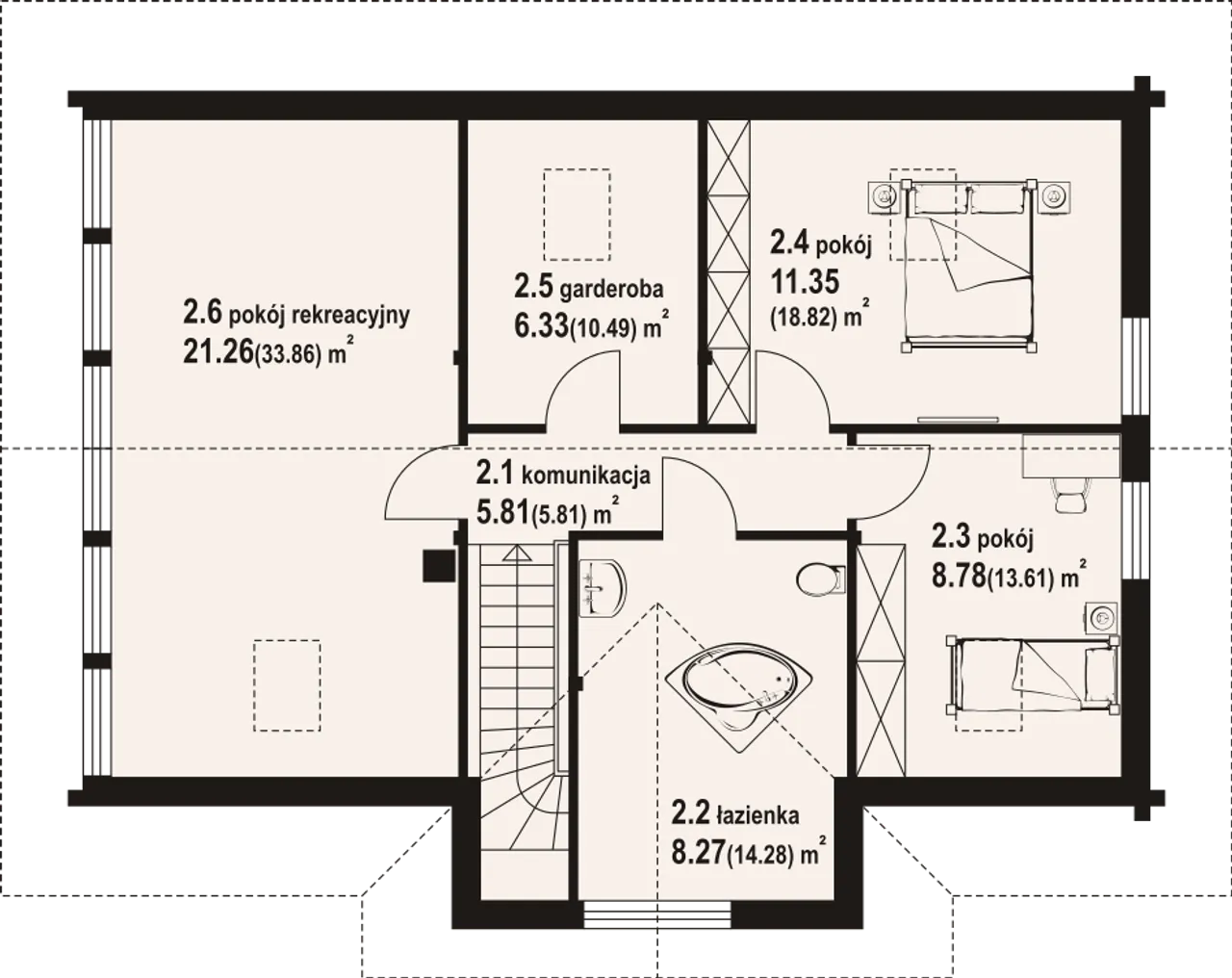 Wypełnij formularz i otrzymaj rysunki w pdf z dokładnymi wymiarami budynku i pomieszczeń (długość, szerokość, wysokość) dla projektu Chmielów dw 25 pcr