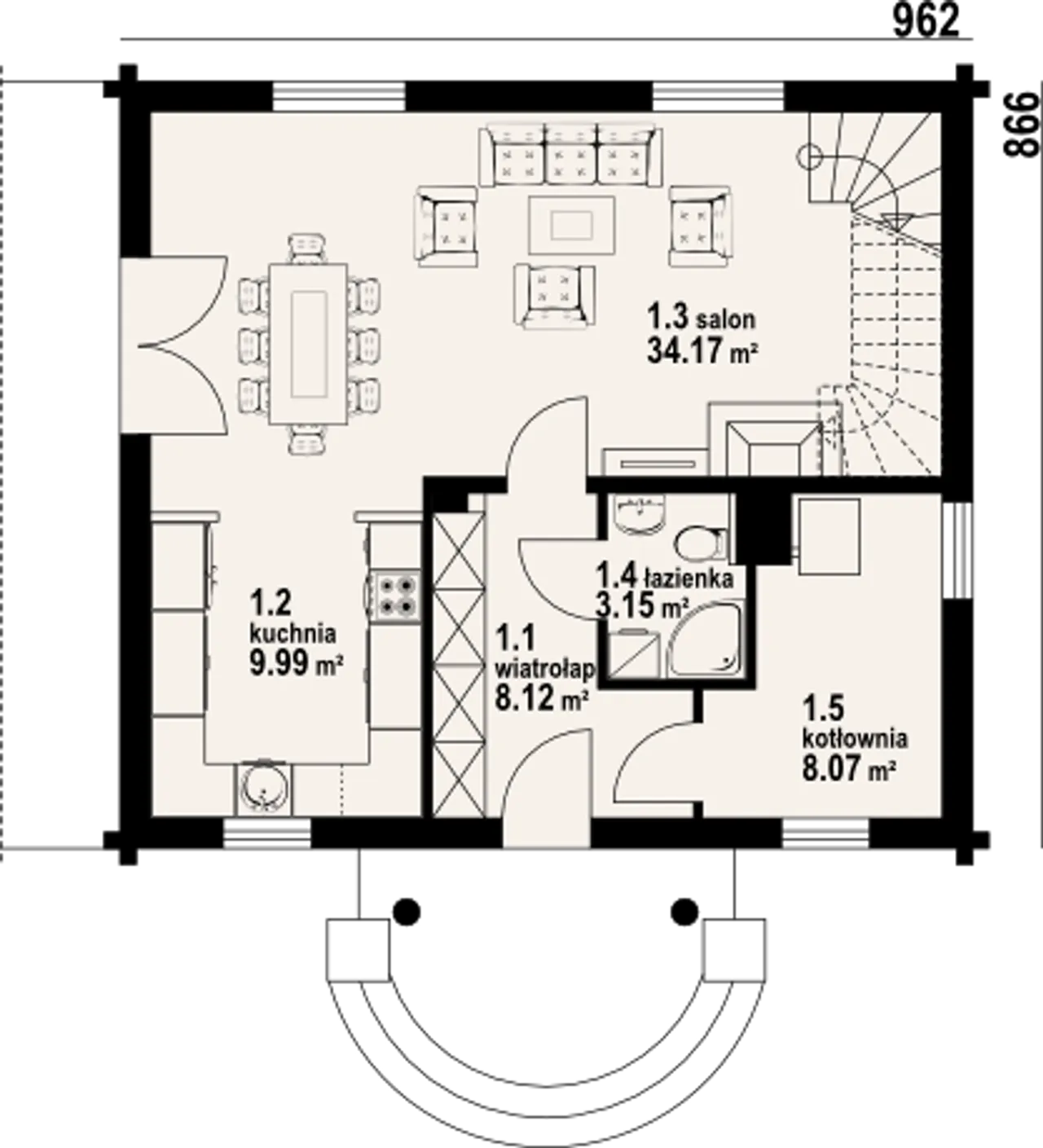 - opisu architektonicznego zawierającego m.in. opis przyjętych rozwiązań, zestawienia powierzchni (użytkowej, zabudowy, netto), kubatury oraz powierzchni poszczególnych pomieszczeń