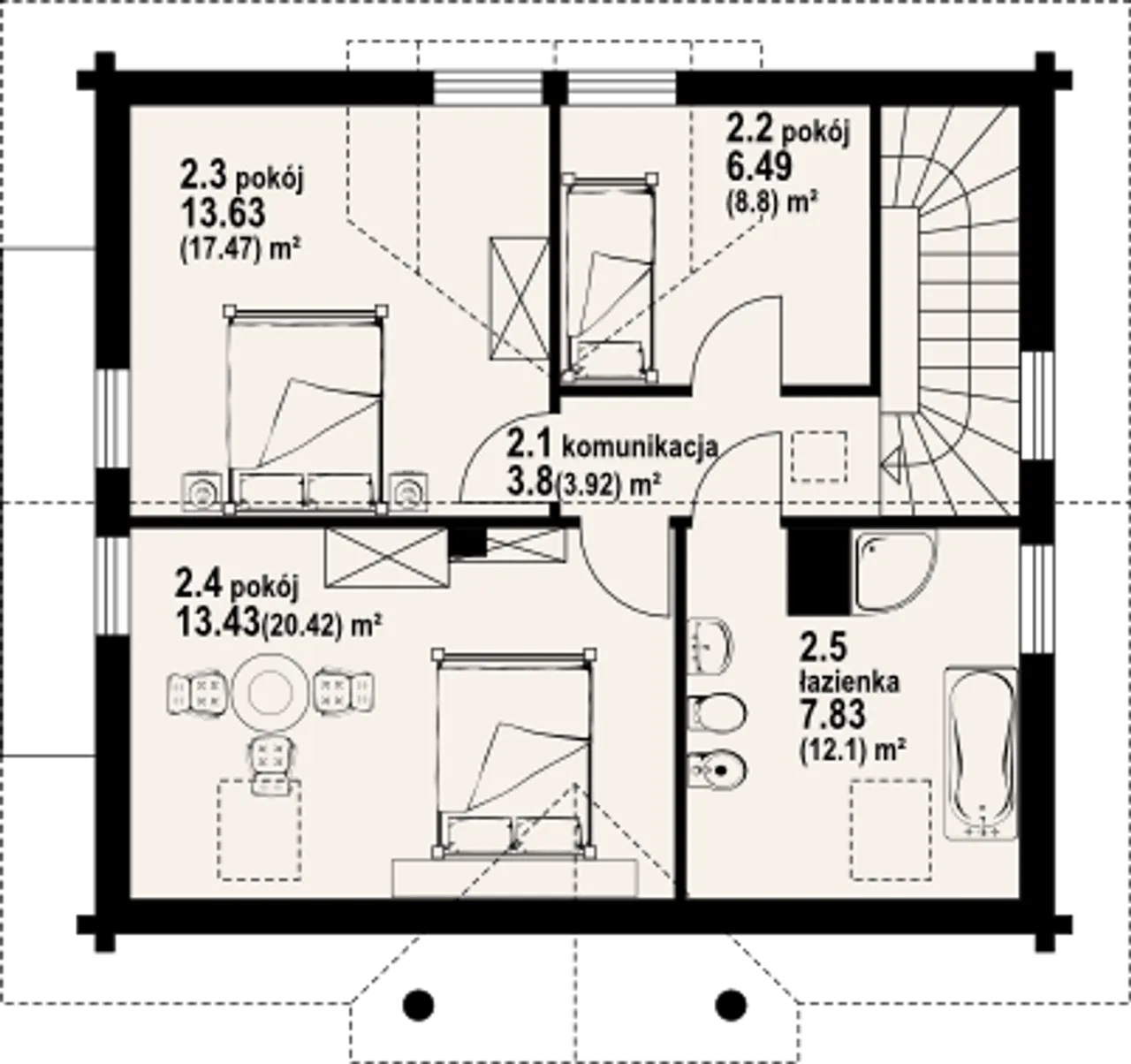 Wypełnij formularz i otrzymaj rysunki w pdf z dokładnymi wymiarami budynku i pomieszczeń (długość, szerokość, wysokość) dla projektu Cisna x dw