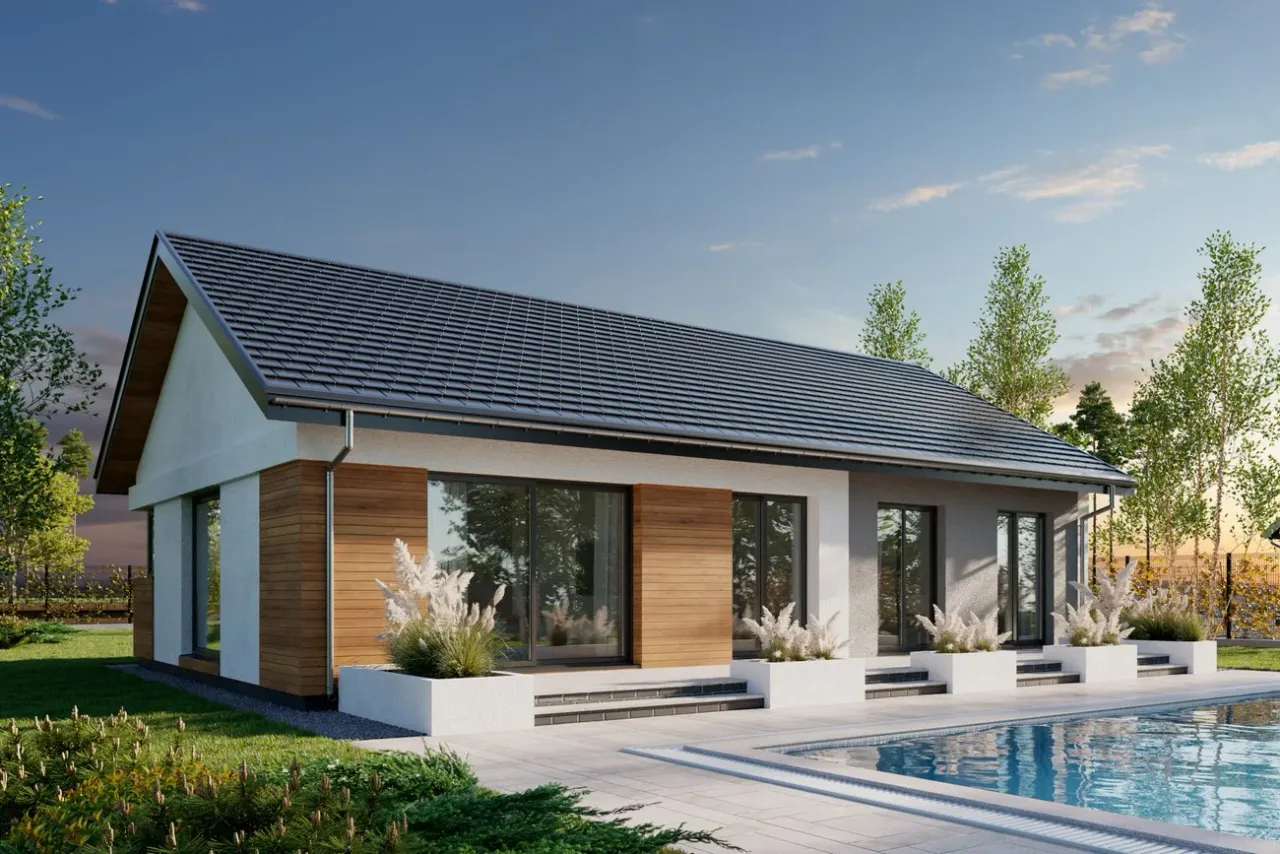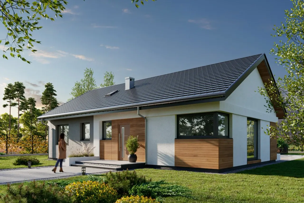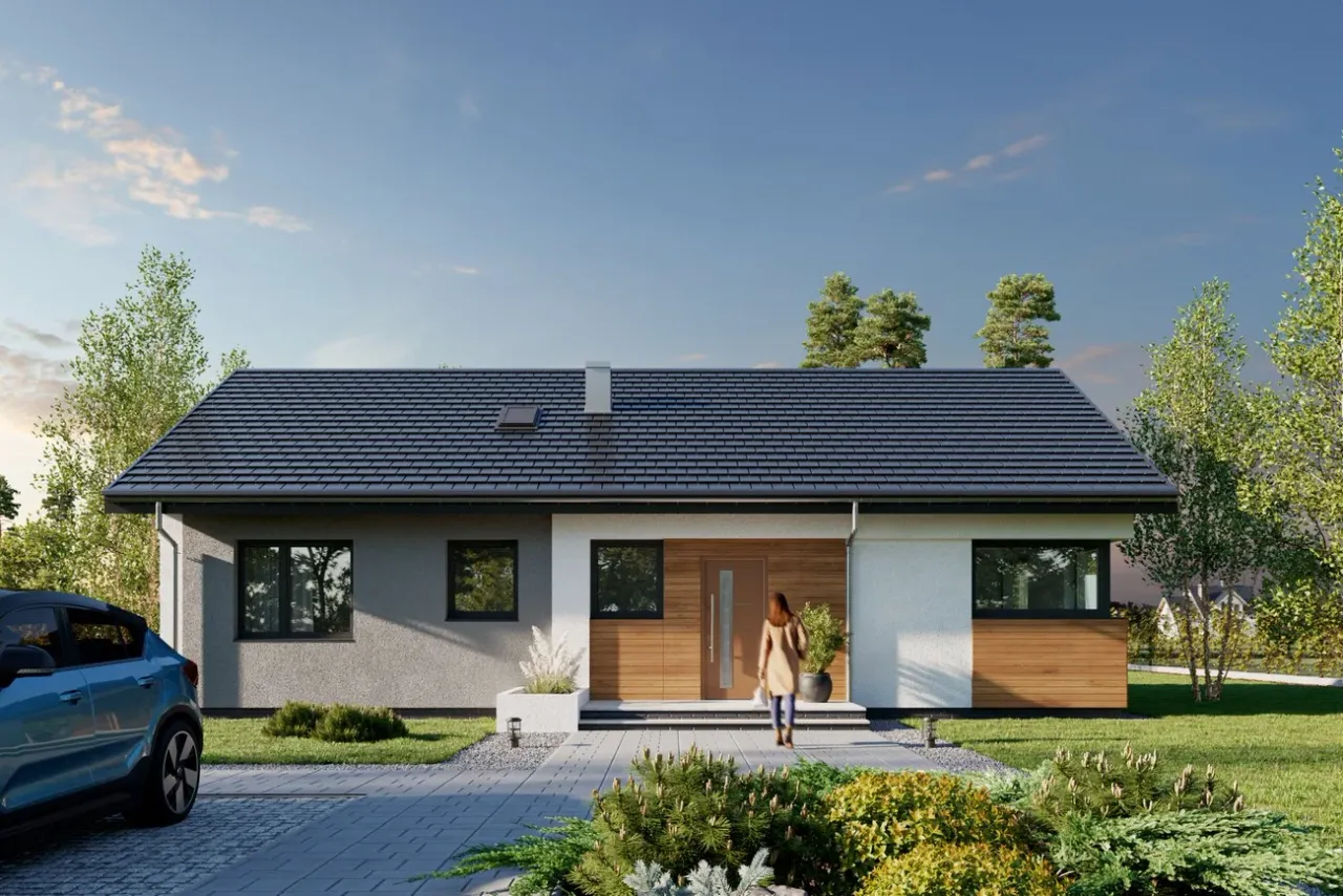 Projekt Cyklamen Beta to idealne połączenie nowoczesności i elegancji, które przyciąga wzrok od pierwszego spojrzenia. Szuka się właśnie takich propozycji, które potrafią zaskoczyć swoim unikalnym charakterem i funkcjonalnością. Wnętrza wydają się być zaprojektowane z myślą o każdym detalu, co sprawia, że każdy pokój ma swój wyjątkowy klimat. Podwójne drzwi tarasowe to idealne rozwiązanie dla osób, które kochają naturalne światło i pragną mieć naturę na wyciągnięcie ręki. Ciekawie ułożona bryła domu Cyklamen Beta zdecydowanie wyróżnia się spośród innych projektów, nadając mu nietuzinkowy wygląd i ducha nowoczesności.