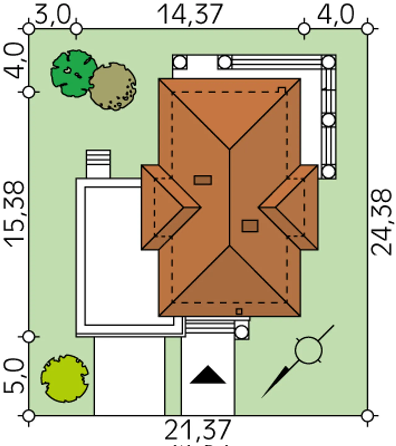 Kąt nachylenia dachu 21 ° |