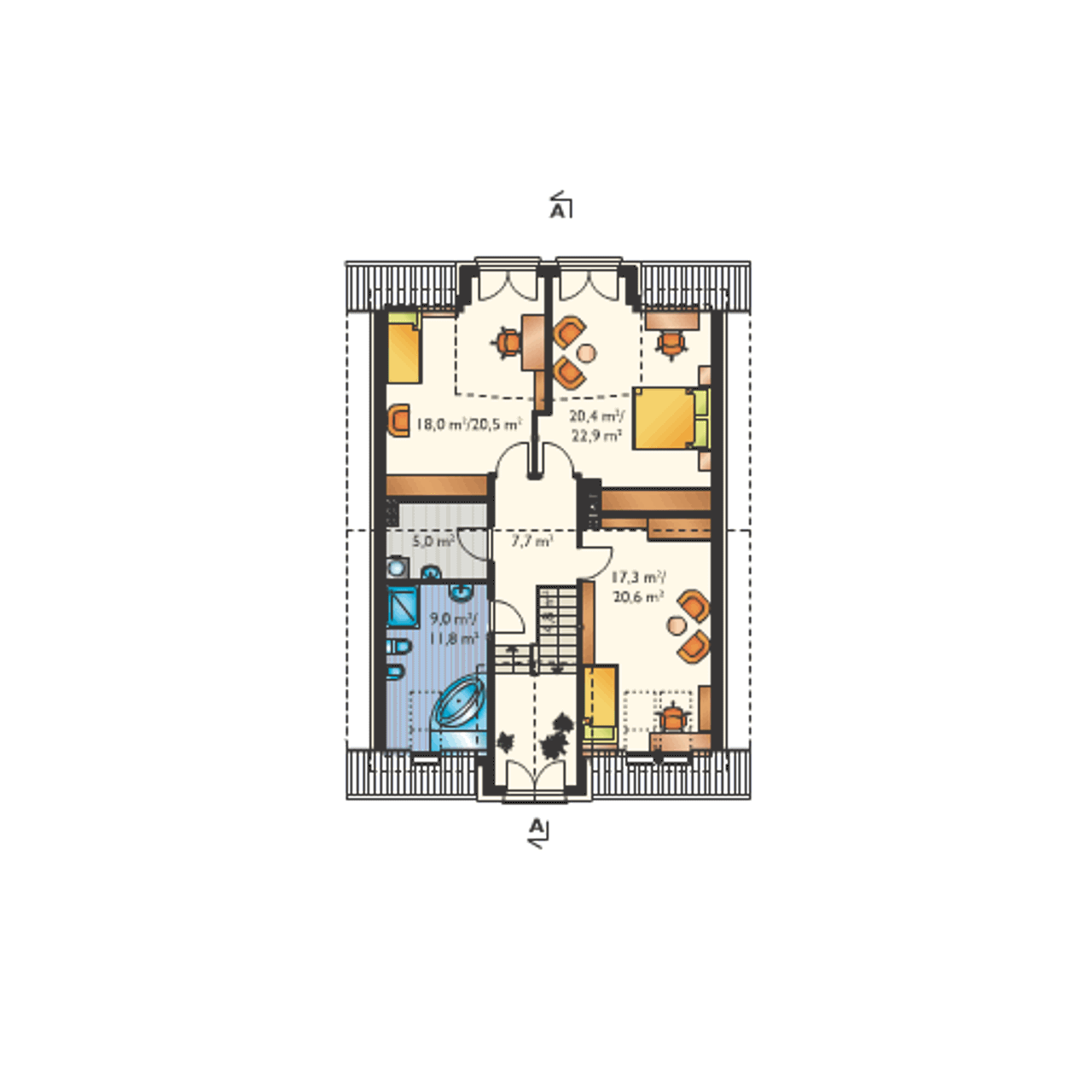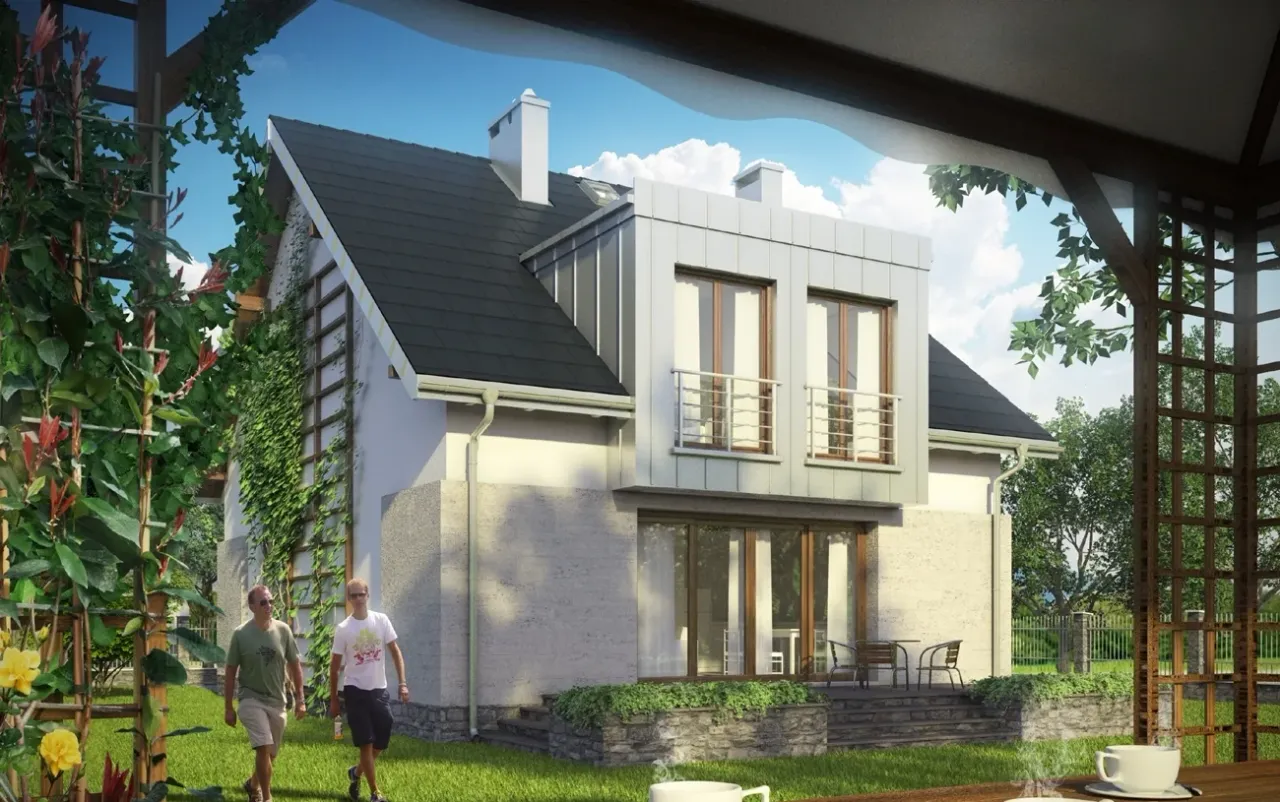 - elewacje - pokazują dokładny wygląd domu od frontu, z tyłu i z boków