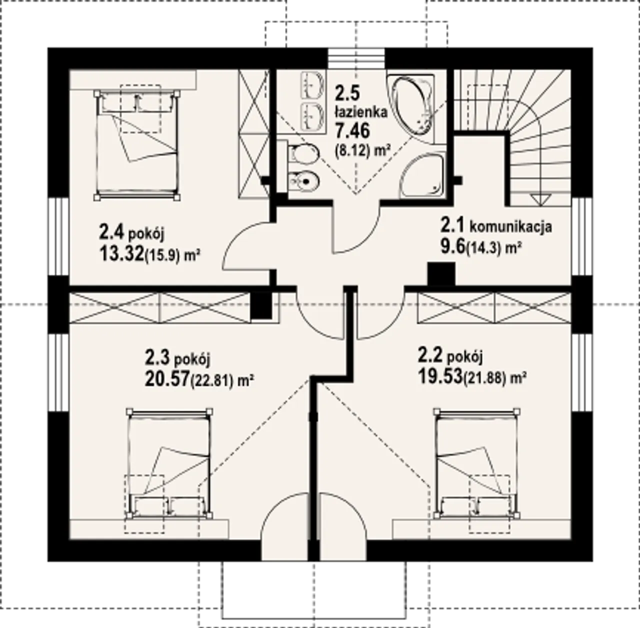 - rzutów kondygnacji użytkowych (parteru i jeśli występują: poddasza, piętra, piwnic)