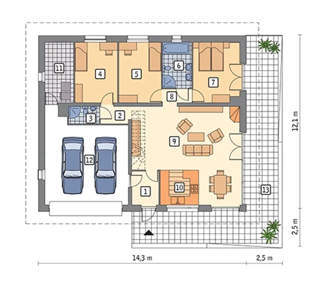 Wypełnij formularz i otrzymaj rysunki w pdf z dokładnymi wymiarami budynku i pomieszczeń (długość, szerokość, wysokość) dla projektu Czterolistna koniczyna - wariant XVIII - C444u