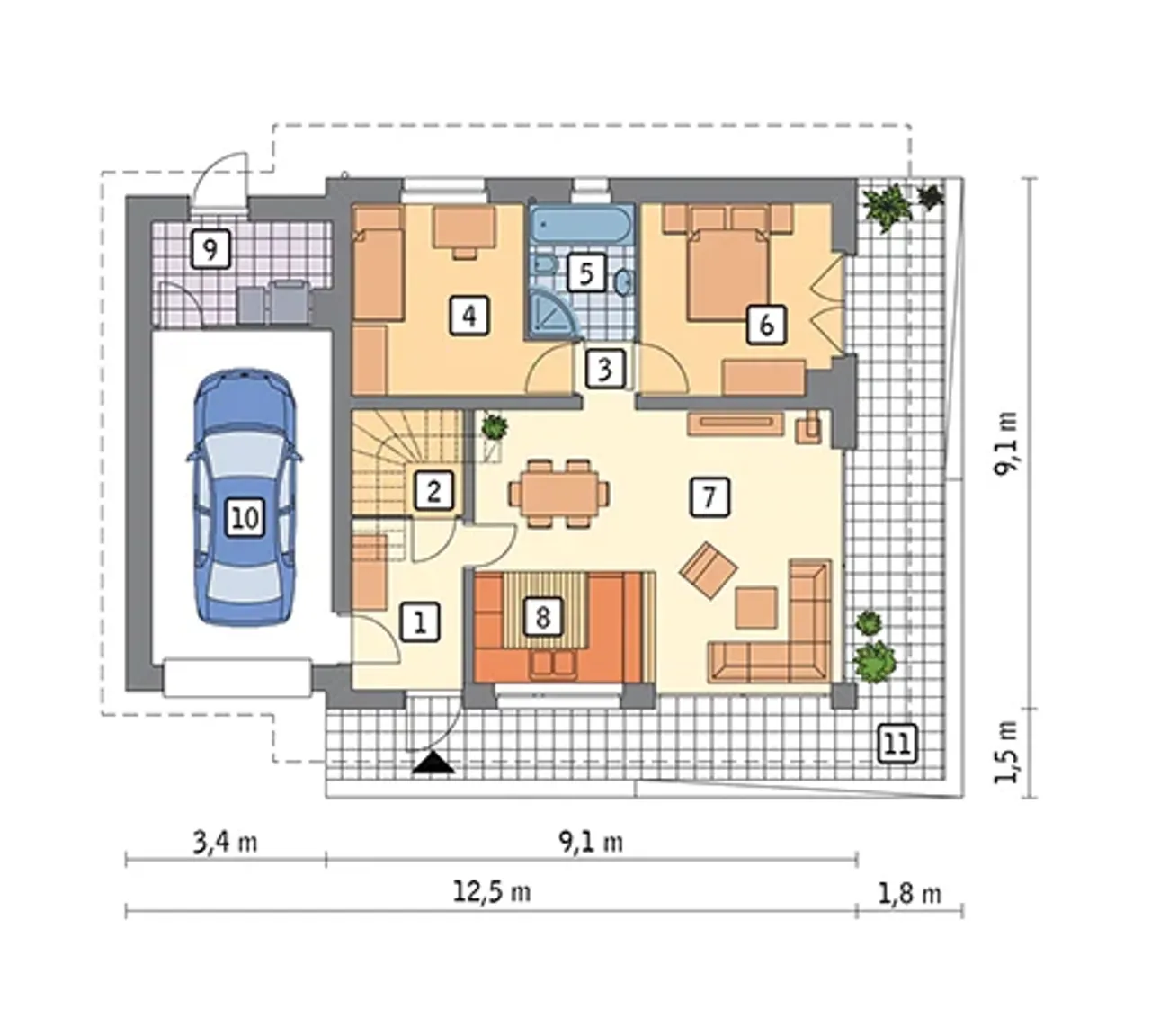 Długość budynku 9.1 m |