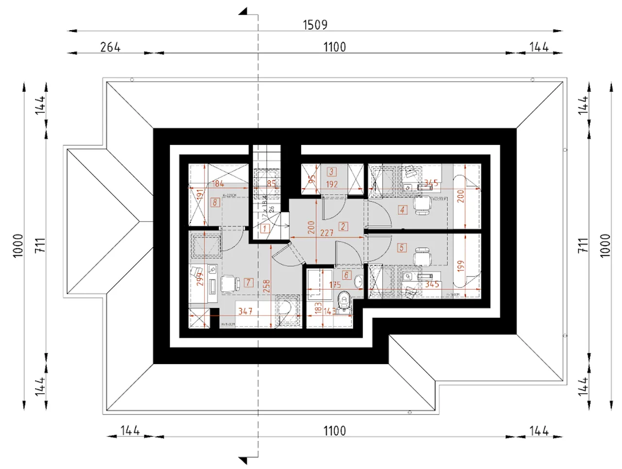 Wypełnij formularz i otrzymaj rysunki w pdf z dokładnymi wymiarami budynku i pomieszczeń (długość, szerokość, wysokość) dla projektu D144D