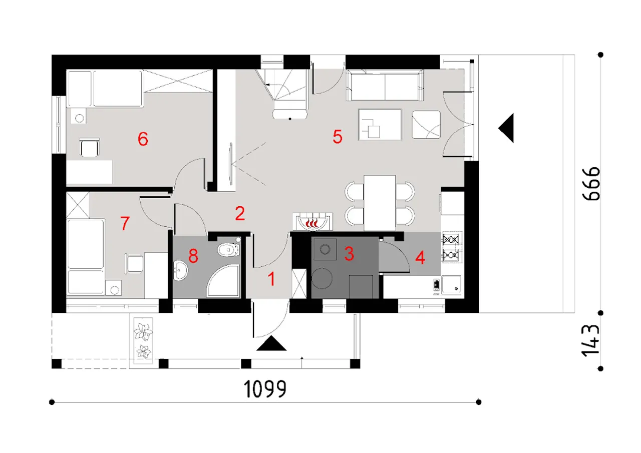 5. Pokój dzienny | 20,27 (22,27) m² |