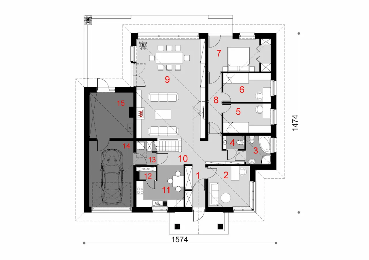 Szerokość budynku 15.74 m |