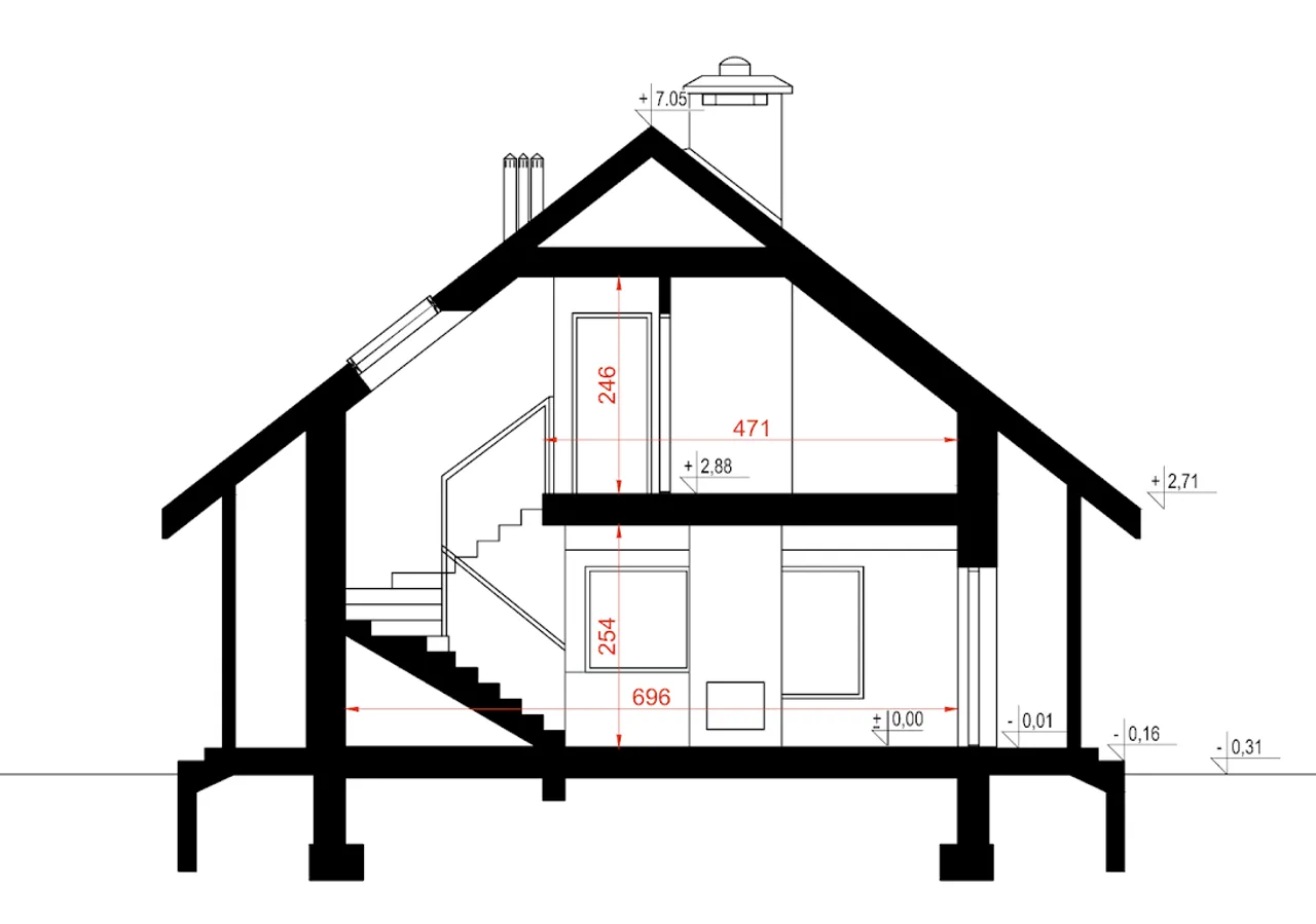 Wypełnij formularz i otrzymaj rysunki w pdf z dokładnymi wymiarami budynku i pomieszczeń (długość, szerokość, wysokość) dla projektu D21 - Piotruś wersja drewniana