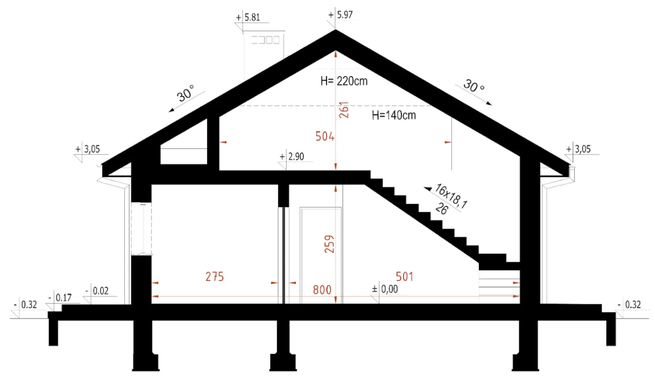 Kąt nachylenia dachu 30 ° |