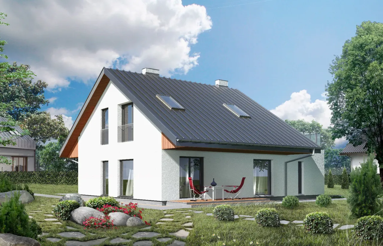 Kupując projekt w technologii murowanej powinieneś budować dom murowany. Zupełna zmiana technologii na szkieletową wymaga przeprojektowania całego budynku ( zmieniają się obciążenia, fundamenty, konstrukcja dachu). Wydamy zgodę na takie przeprojektowanie jednak wiążę się to z dużymi kosztami. Istnieją firmy wykonawcze, które podejmują się zmiany technologii budowy bezpłatnie przy skorzystaniu z ich usług wykonawczych. Zdarza się, że pracownia architektoniczna przygotowuje warianty konkretnego projektu przewidując także inne technologie. Prosimy o sprawdzenie czy istnieje poszukiwana wersja projektu, w zakładce - warianty projektu.