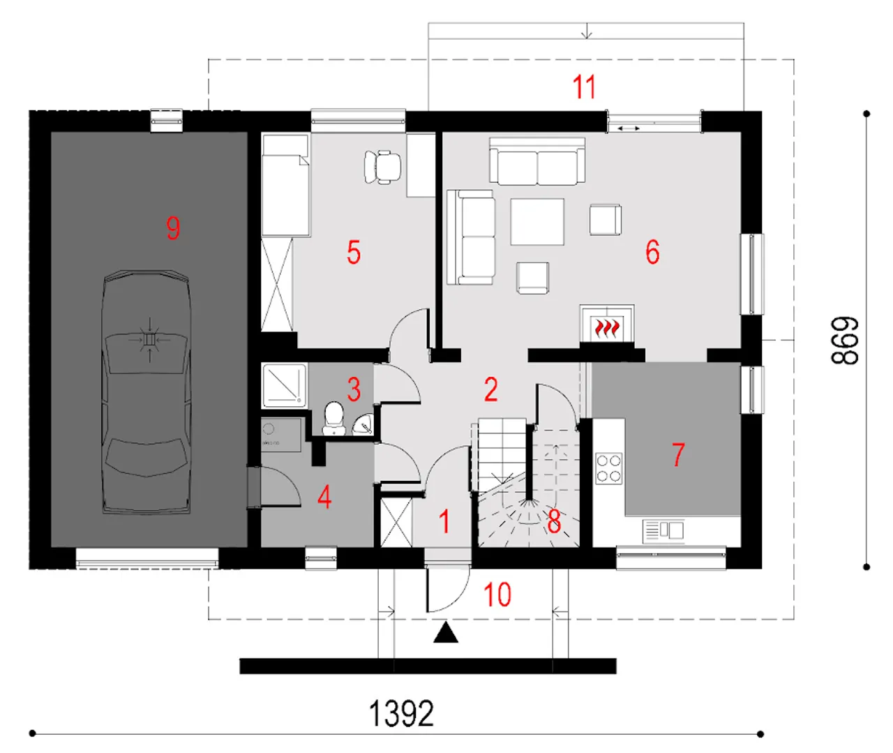 Wypełnij formularz i otrzymaj rysunki w pdf z dokładnymi wymiarami budynku i pomieszczeń (długość, szerokość, wysokość) dla projektu D221 - WT2021