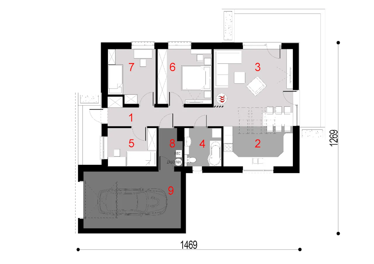 Projekt ten wpada w oko swoim nietuzinkowym i nowoczesnym designem. Zdecydowanie wyróżnia się wśród innych. Widać, że oddaje on ducha nowoczesnego budownictwa.