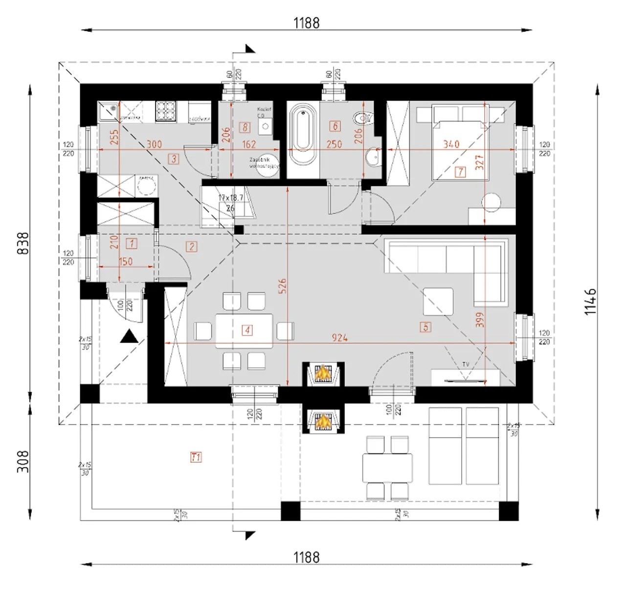 Kupując projekt w technologii murowanej powinieneś budować dom murowany. Zupełna zmiana technologii na szkieletową wymaga przeprojektowania całego budynku ( zmieniają się obciążenia, fundamenty, konstrukcja dachu). Wydamy zgodę na takie przeprojektowanie jednak wiążę się to z dużymi kosztami. Istnieją firmy wykonawcze, które podejmują się zmiany technologii budowy bezpłatnie przy skorzystaniu z ich usług wykonawczych. Zdarza się, że pracownia architektoniczna przygotowuje warianty konkretnego projektu przewidując także inne technologie. Prosimy o sprawdzenie czy istnieje poszukiwana wersja projektu, w zakładce - warianty projektu.