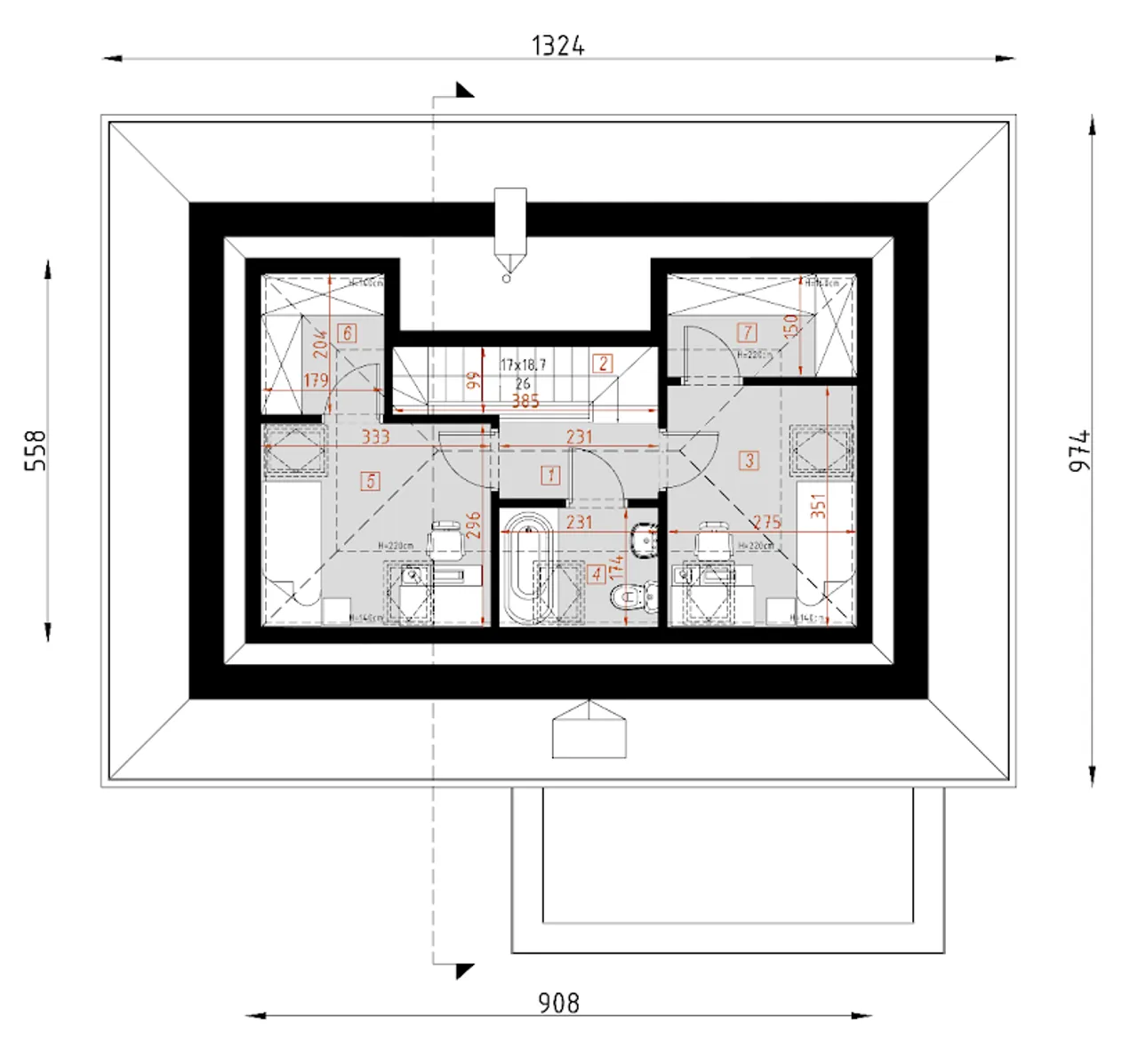 Wypełnij formularz i otrzymaj rysunki w pdf z dokładnymi wymiarami budynku i pomieszczeń (długość, szerokość, wysokość) dla projektu D236 - WT2021