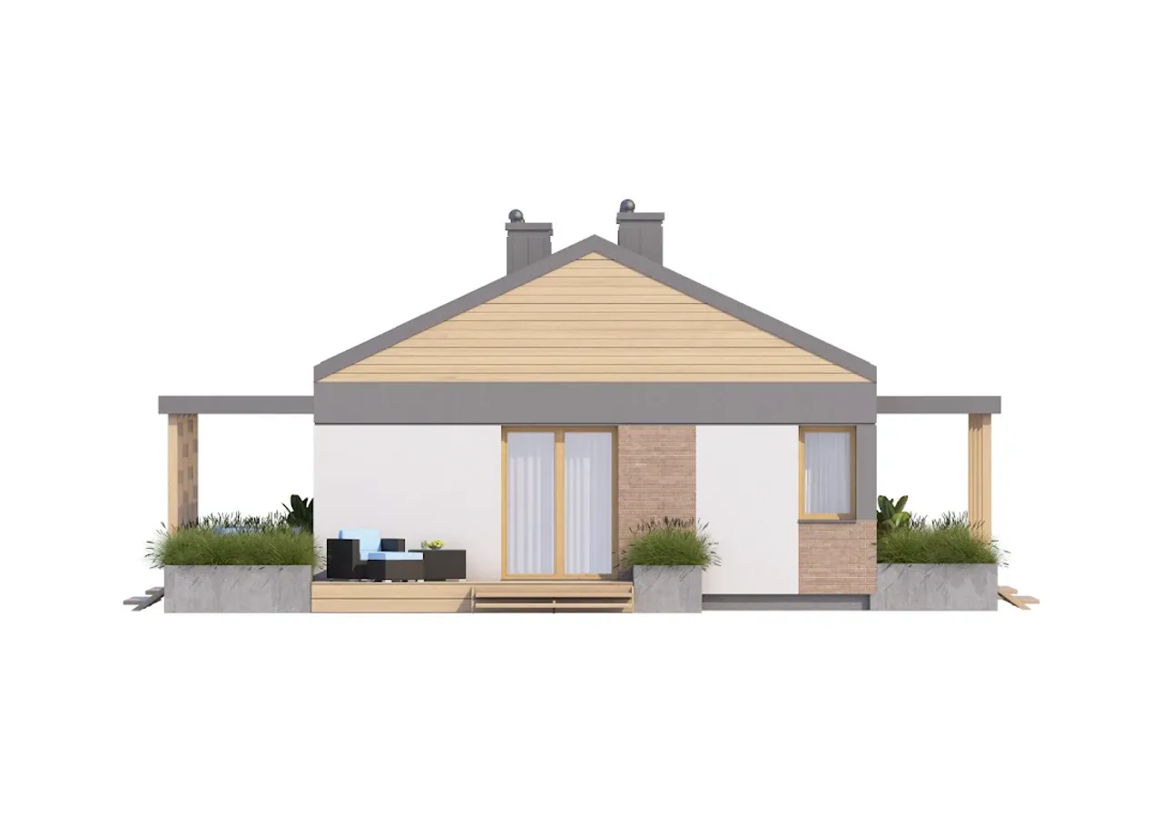 Kupując projekt w technologii murowanej powinieneś budować dom murowany. Zupełna zmiana technologii na szkieletową wymaga przeprojektowania całego budynku ( zmieniają się obciążenia, fundamenty, konstrukcja dachu). Wydamy zgodę na takie przeprojektowanie jednak wiążę się to z dużymi kosztami. Istnieją firmy wykonawcze, które podejmują się zmiany technologii budowy bezpłatnie przy skorzystaniu z ich usług wykonawczych. Zdarza się, że pracownia architektoniczna przygotowuje warianty konkretnego projektu przewidując także inne technologie. Prosimy o sprawdzenie czy istnieje poszukiwana wersja projektu, w zakładce - warianty projektu.