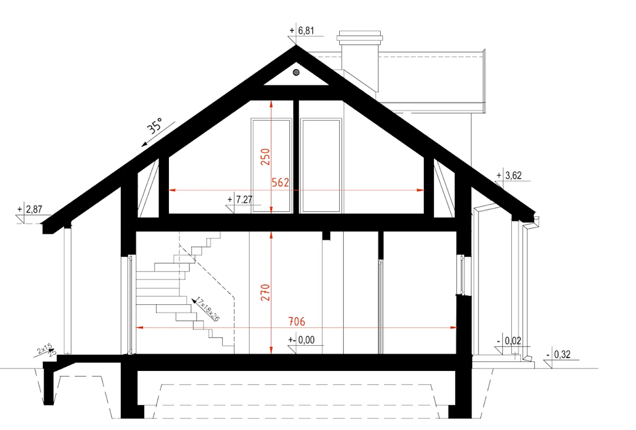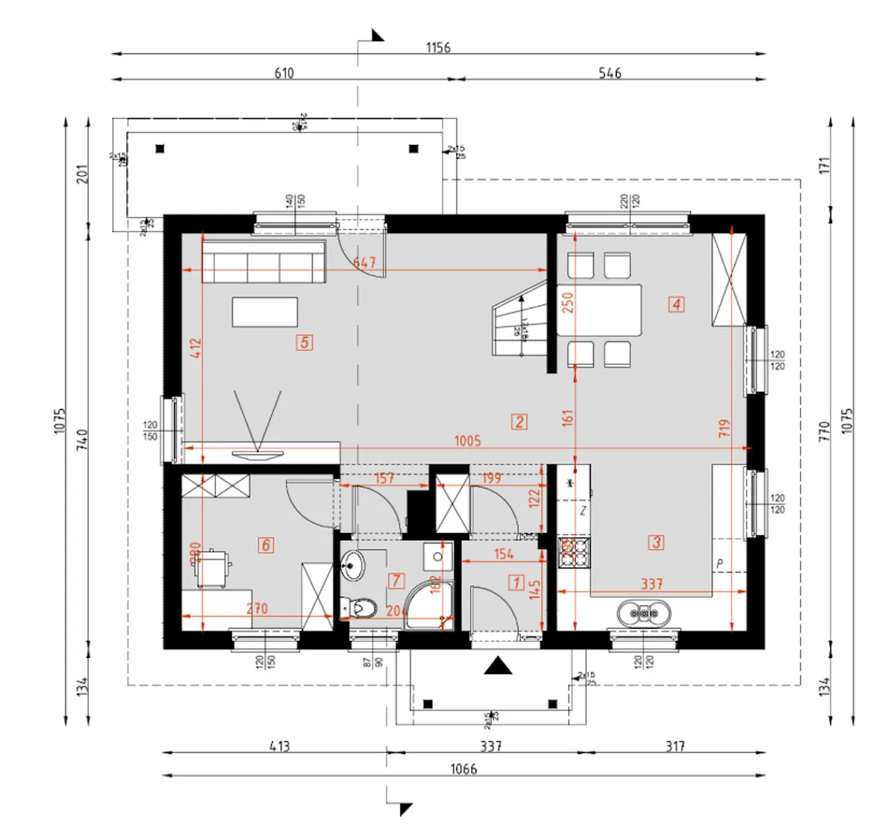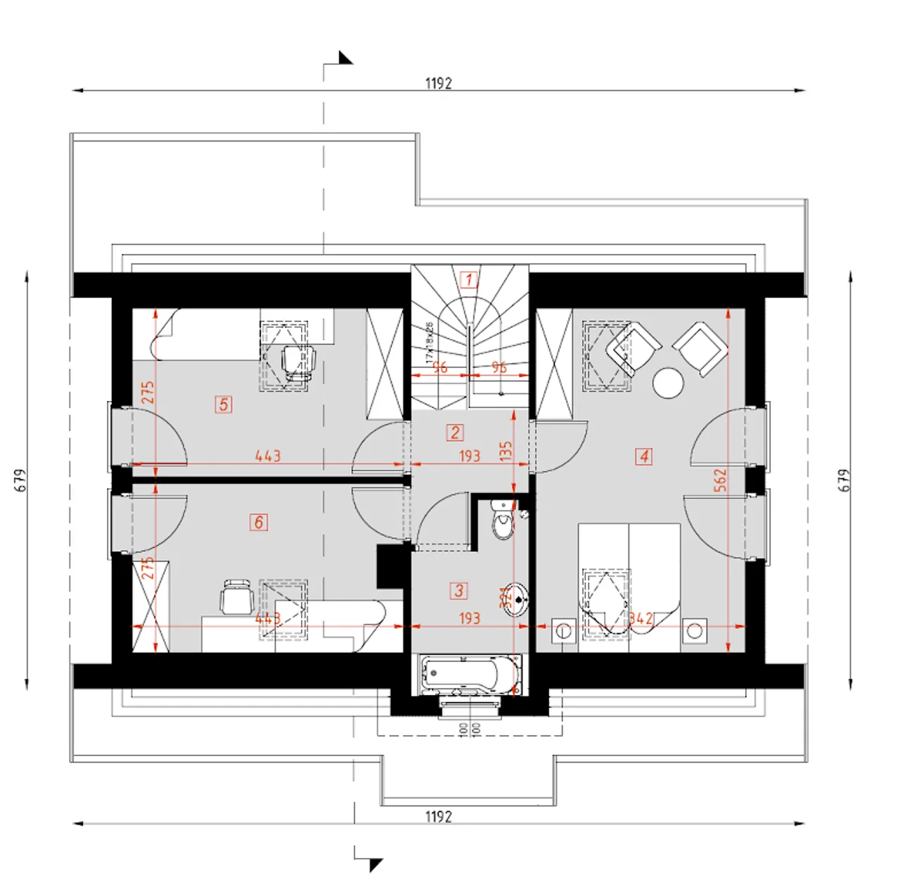 Wypełnij formularz i otrzymaj rysunki w pdf z dokładnymi wymiarami budynku i pomieszczeń (długość, szerokość, wysokość) dla projektu D29 - Maryla