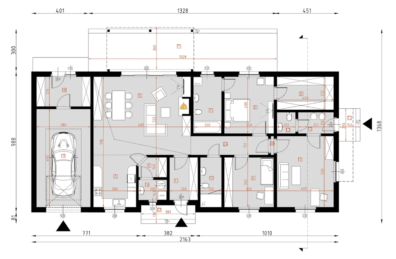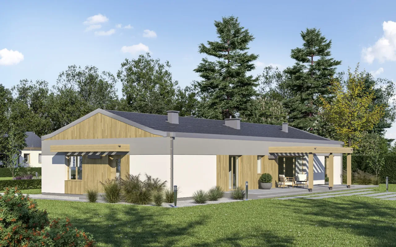Kupując projekt w technologii murowanej powinieneś budować dom murowany. Zupełna zmiana technologii na szkieletową wymaga przeprojektowania całego budynku ( zmieniają się obciążenia, fundamenty, konstrukcja dachu). Wydamy zgodę na takie przeprojektowanie jednak wiążę się to z dużymi kosztami. Istnieją firmy wykonawcze, które podejmują się zmiany technologii budowy bezpłatnie przy skorzystaniu z ich usług wykonawczych. Zdarza się, że pracownia architektoniczna przygotowuje warianty konkretnego projektu przewidując także inne technologie. Prosimy o sprawdzenie czy istnieje poszukiwana wersja projektu, w zakładce - warianty projektu.
