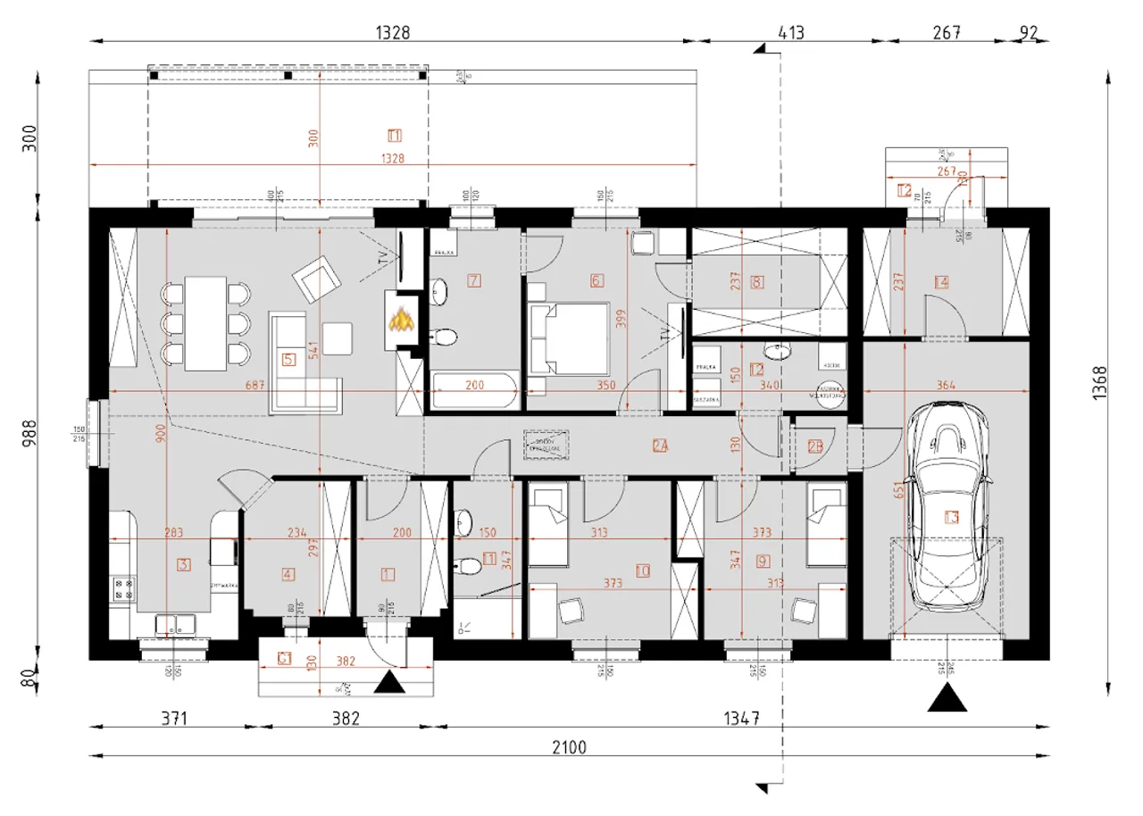 Wypełnij formularz i otrzymaj rysunki w pdf z dokładnymi wymiarami budynku i pomieszczeń (długość, szerokość, wysokość) dla projektu D292C - WT2021