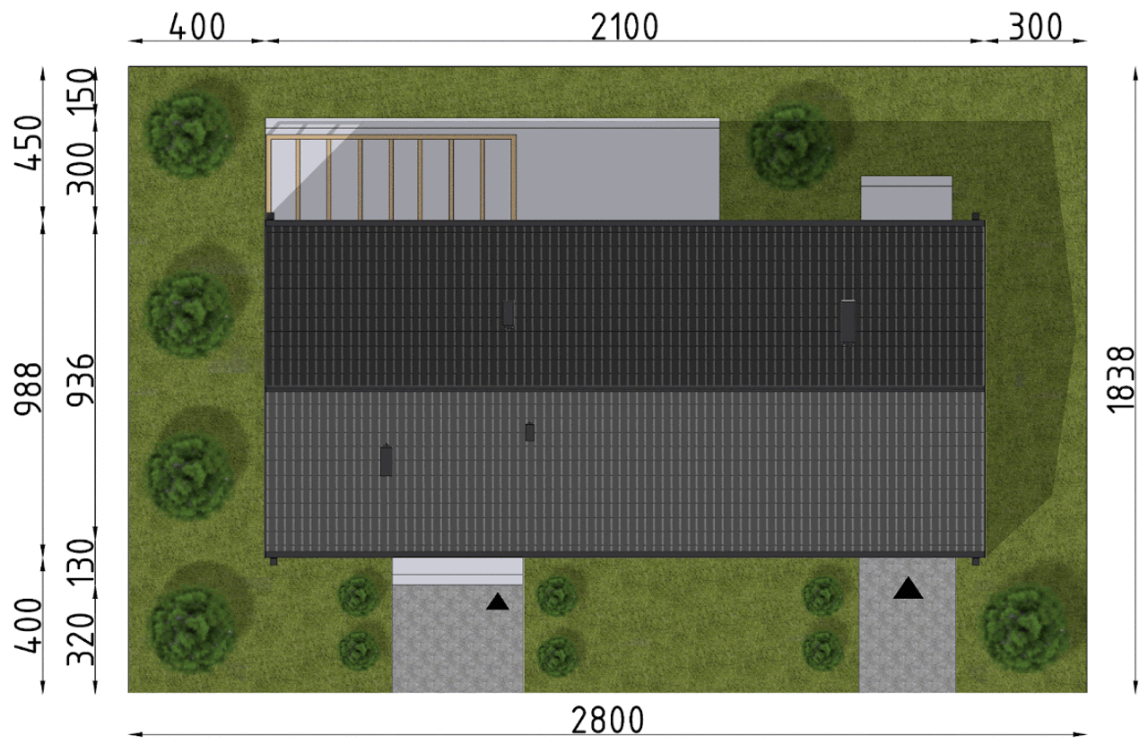 Wypełnij formularz i otrzymaj rysunki w pdf z dokładnymi wymiarami budynku i pomieszczeń (długość, szerokość, wysokość) dla projektu D292C - WT2021 wersja drewniana