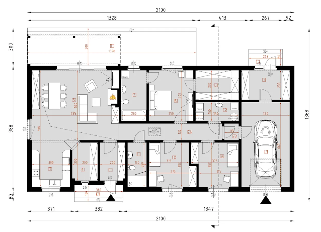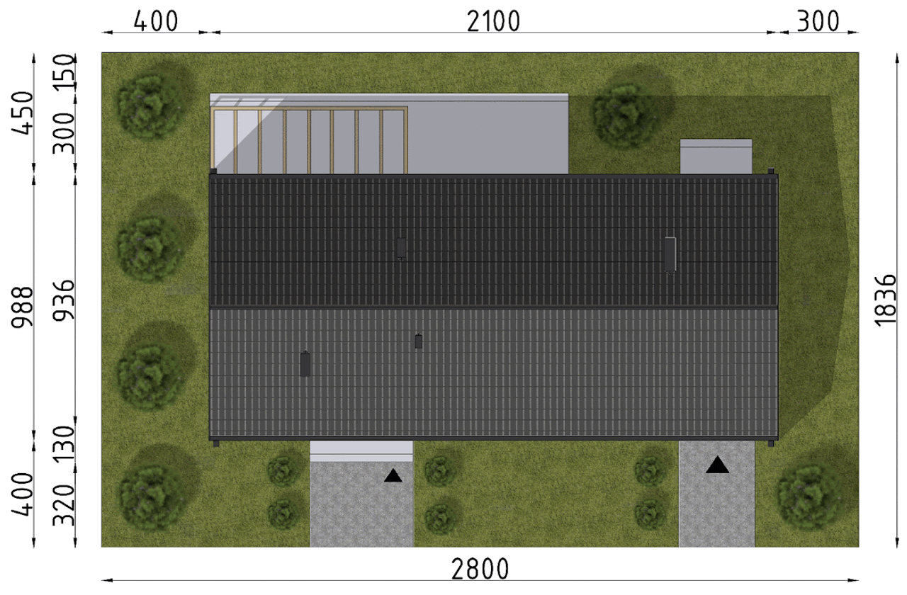Wypełnij formularz i otrzymaj rysunki w pdf z dokładnymi wymiarami budynku i pomieszczeń (długość, szerokość, wysokość) dla projektu D292D - WT2021 wersja drewniana