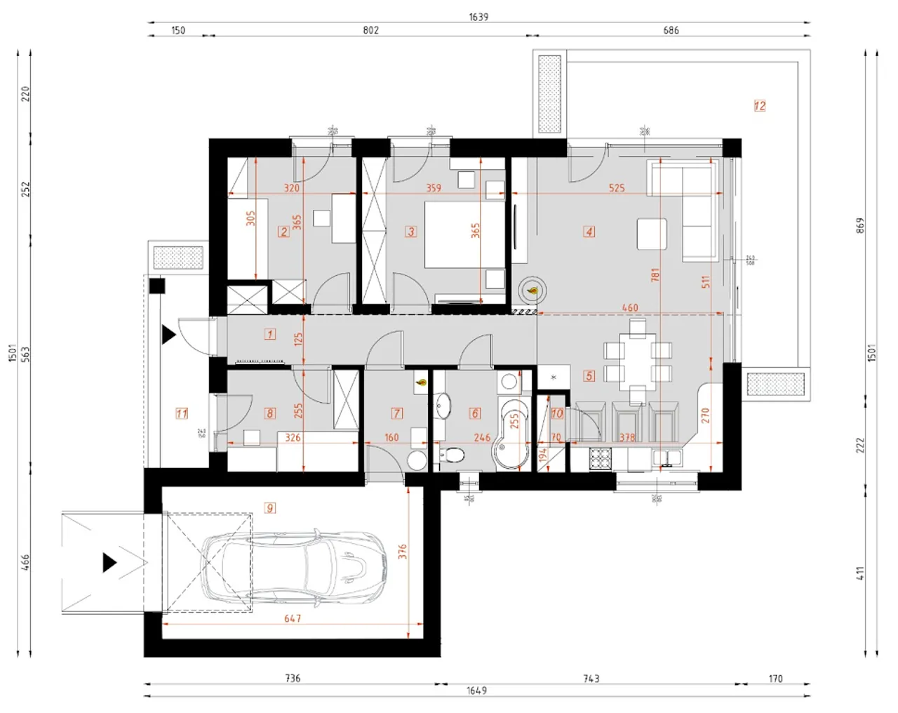 Wypełnij formularz i otrzymaj rysunki w pdf z dokładnymi wymiarami budynku i pomieszczeń (długość, szerokość, wysokość) dla projektu D297 - WT2021