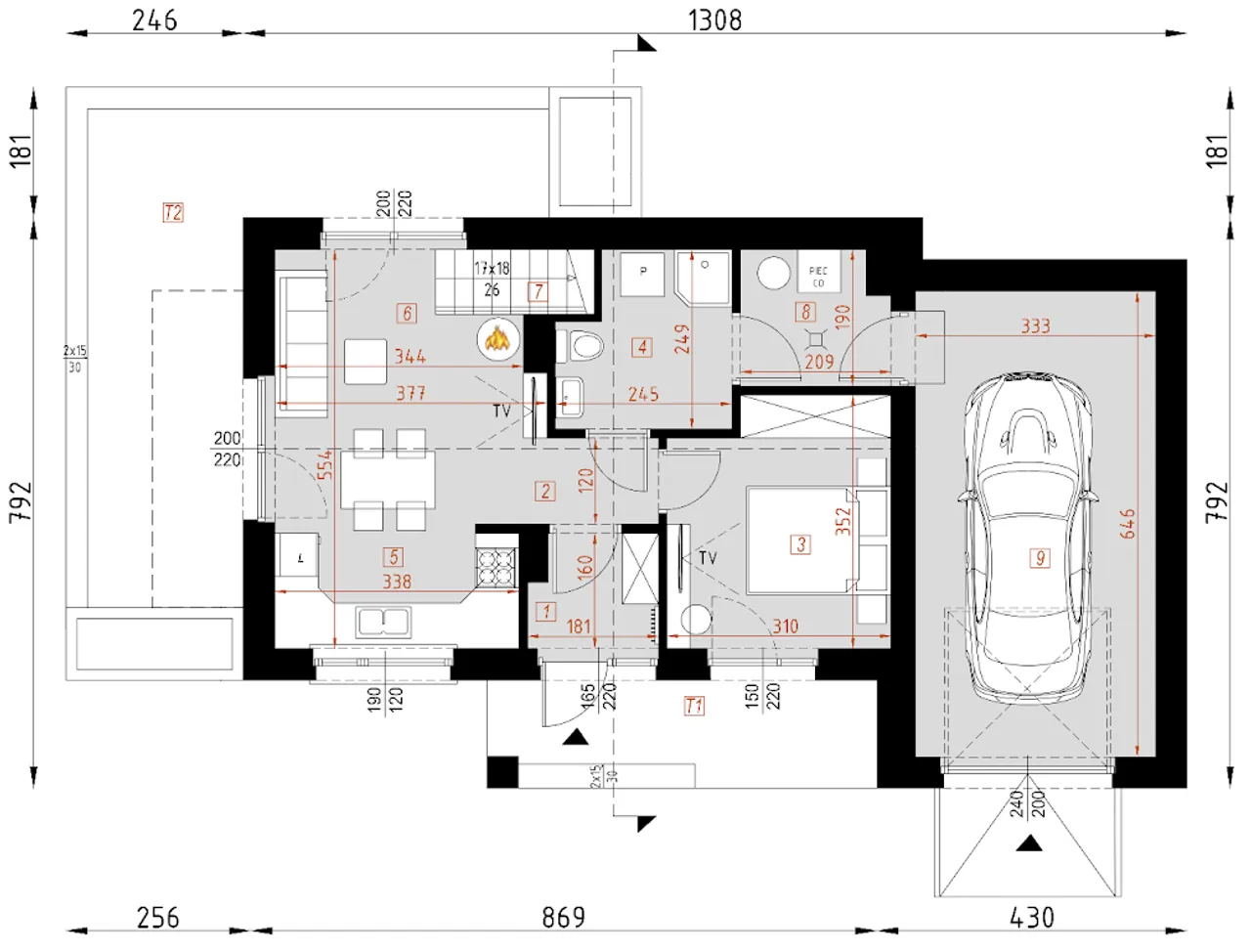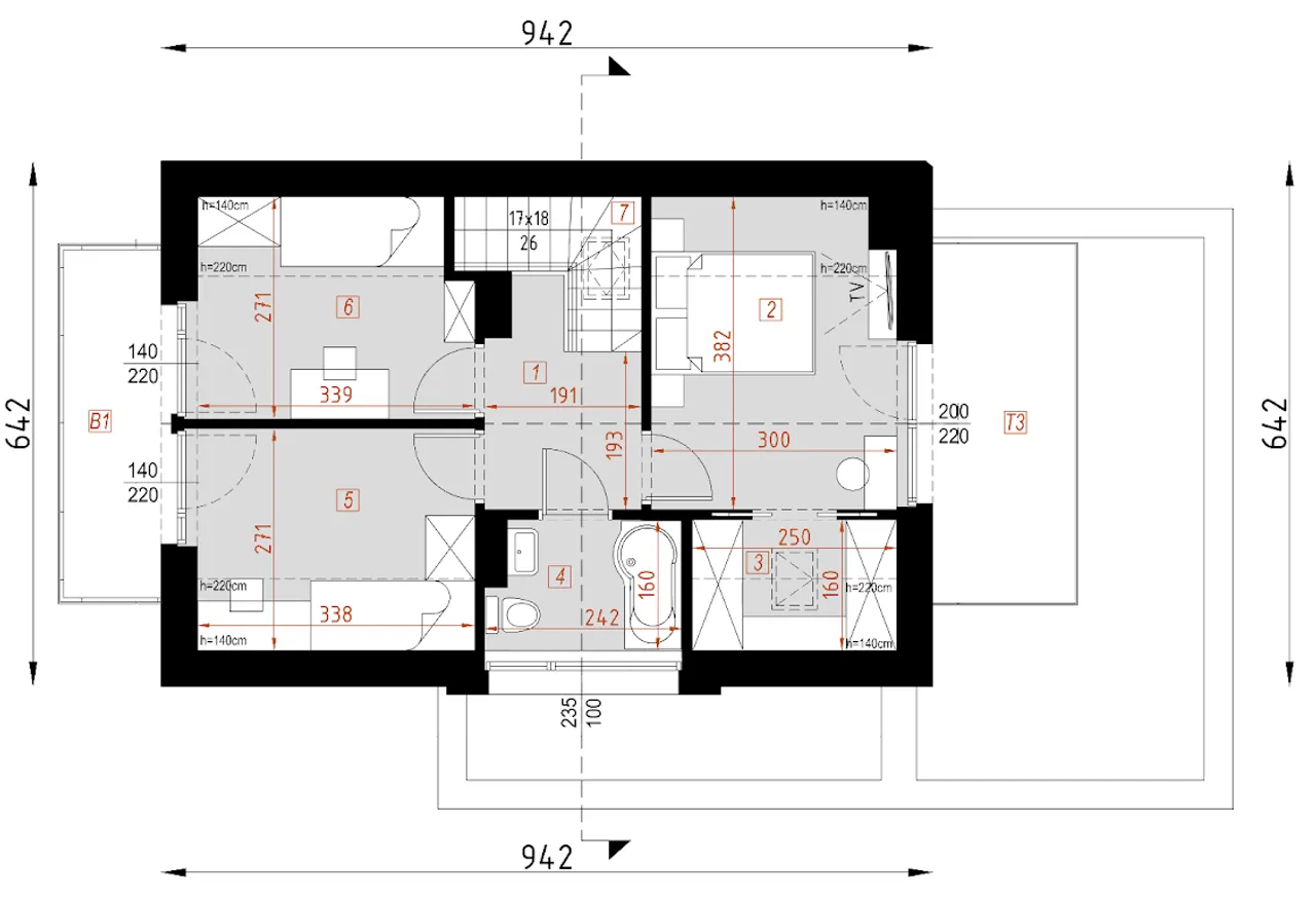 Wypełnij formularz i otrzymaj rysunki w pdf z dokładnymi wymiarami budynku i pomieszczeń (długość, szerokość, wysokość) dla projektu D304 - WT2021
