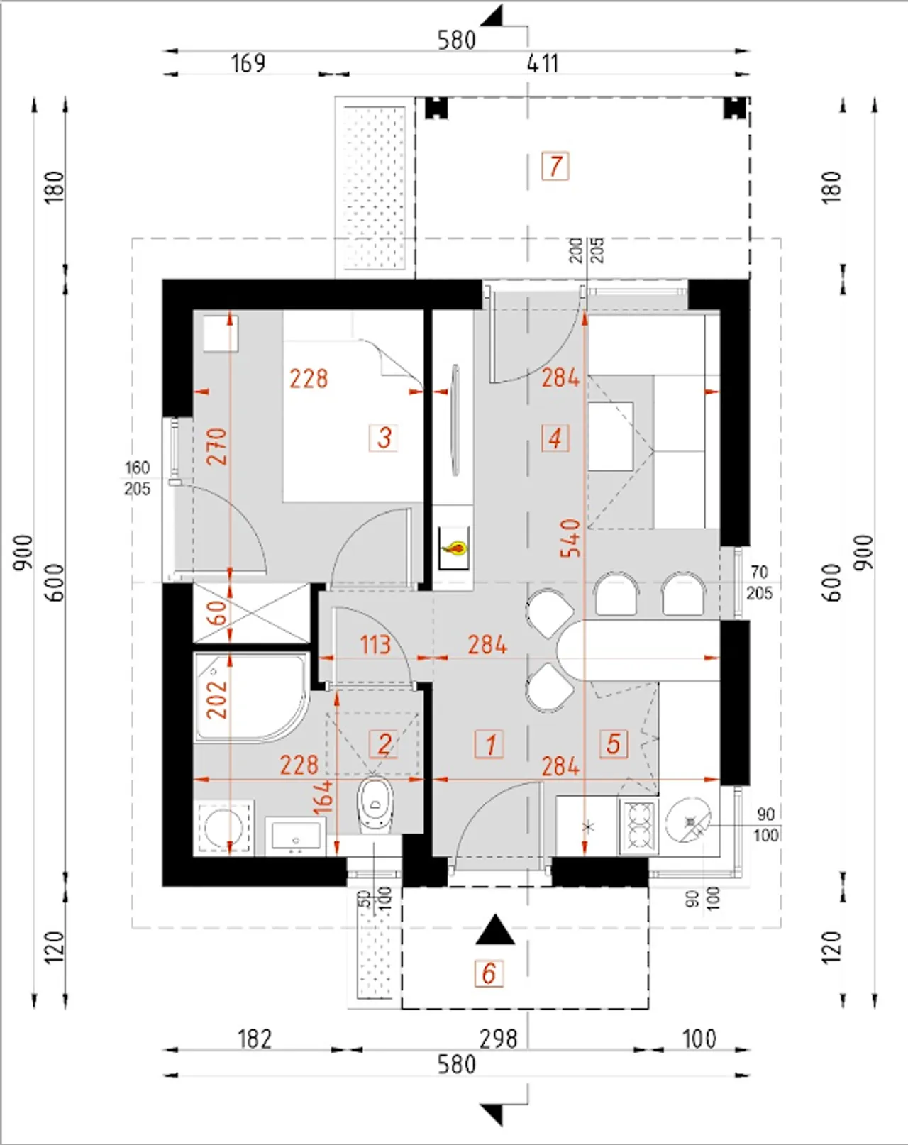 Wypełnij formularz i otrzymaj rysunki w pdf z dokładnymi wymiarami budynku i pomieszczeń (długość, szerokość, wysokość) dla projektu D308