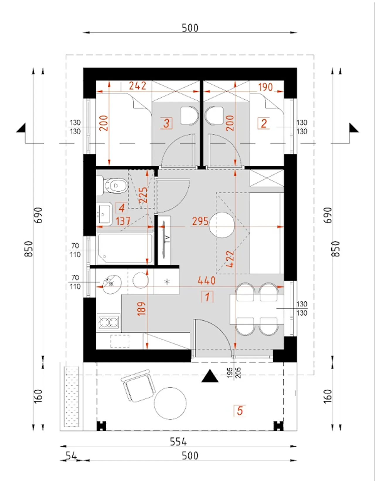 Wypełnij formularz i otrzymaj rysunki w pdf z dokładnymi wymiarami budynku i pomieszczeń (długość, szerokość, wysokość) dla projektu D310