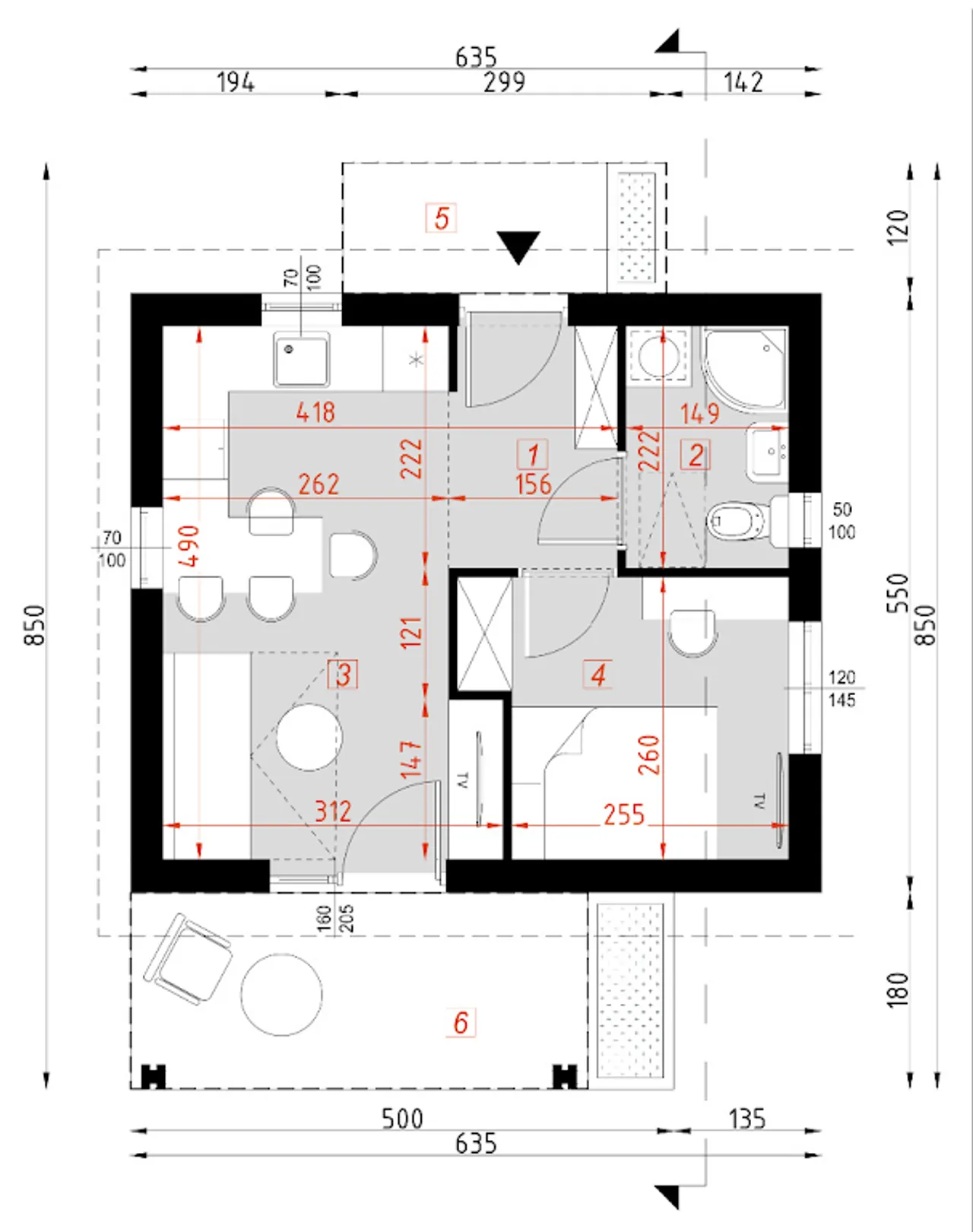Wypełnij formularz i otrzymaj rysunki w pdf z dokładnymi wymiarami budynku i pomieszczeń (długość, szerokość, wysokość) dla projektu D311