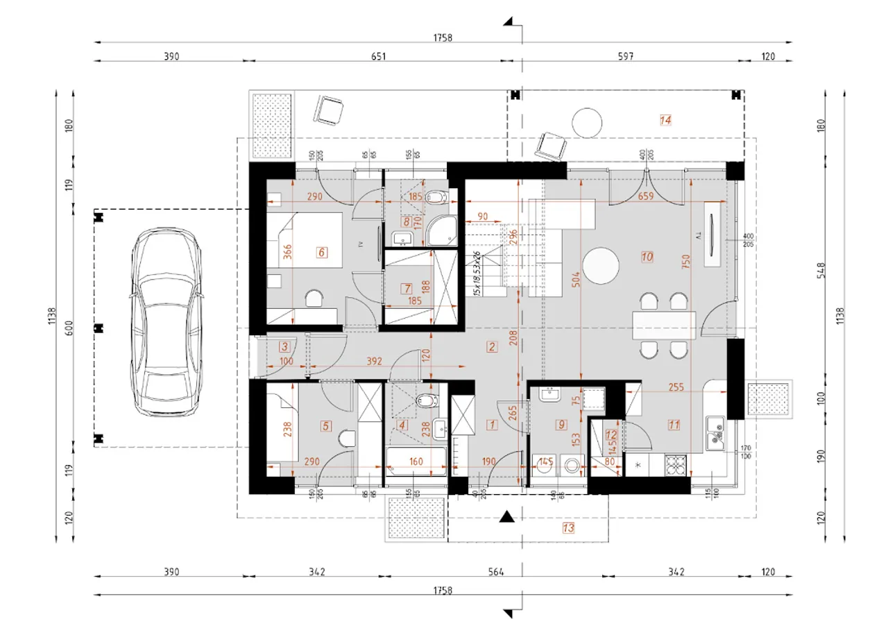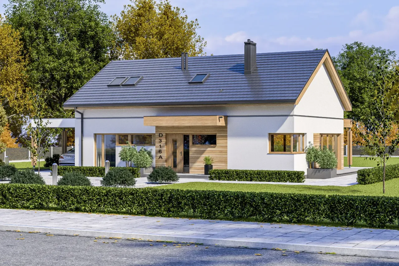 Wypełnij formularz i otrzymaj rysunki w pdf z dokładnymi wymiarami budynku i pomieszczeń (długość, szerokość, wysokość) dla projektu D316A - WT2021