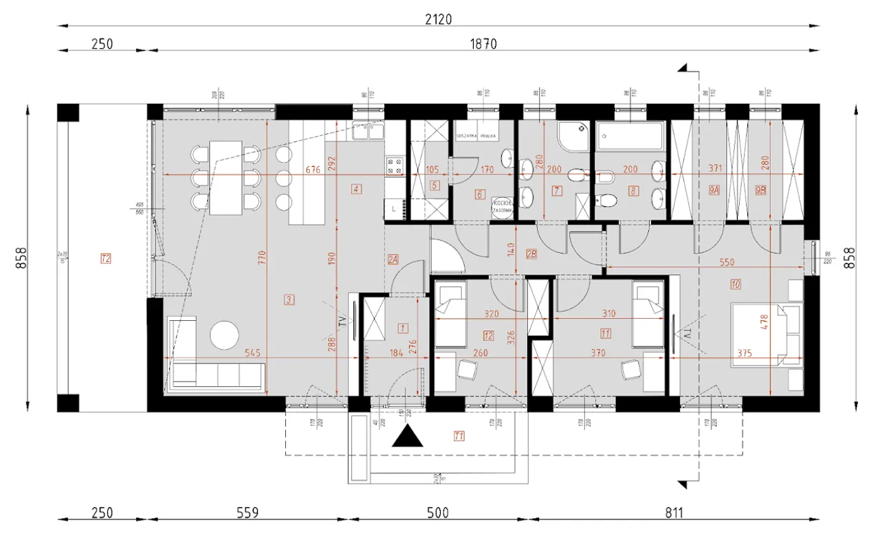 Wypełnij formularz i otrzymaj rysunki w pdf z dokładnymi wymiarami budynku i pomieszczeń (długość, szerokość, wysokość) dla projektu D322 - WT2021