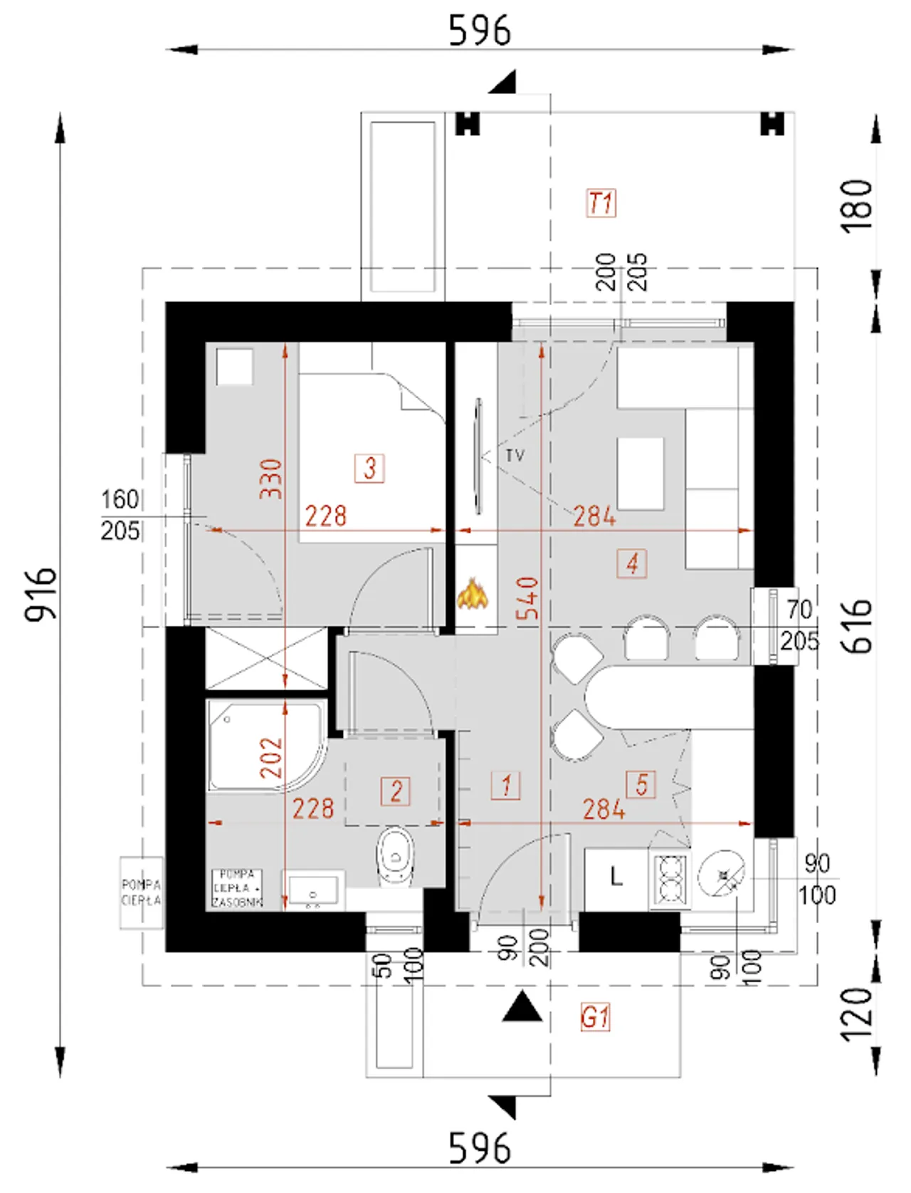 Wypełnij formularz i otrzymaj rysunki w pdf z dokładnymi wymiarami budynku i pomieszczeń (długość, szerokość, wysokość) dla projektu D327 - WT2021
