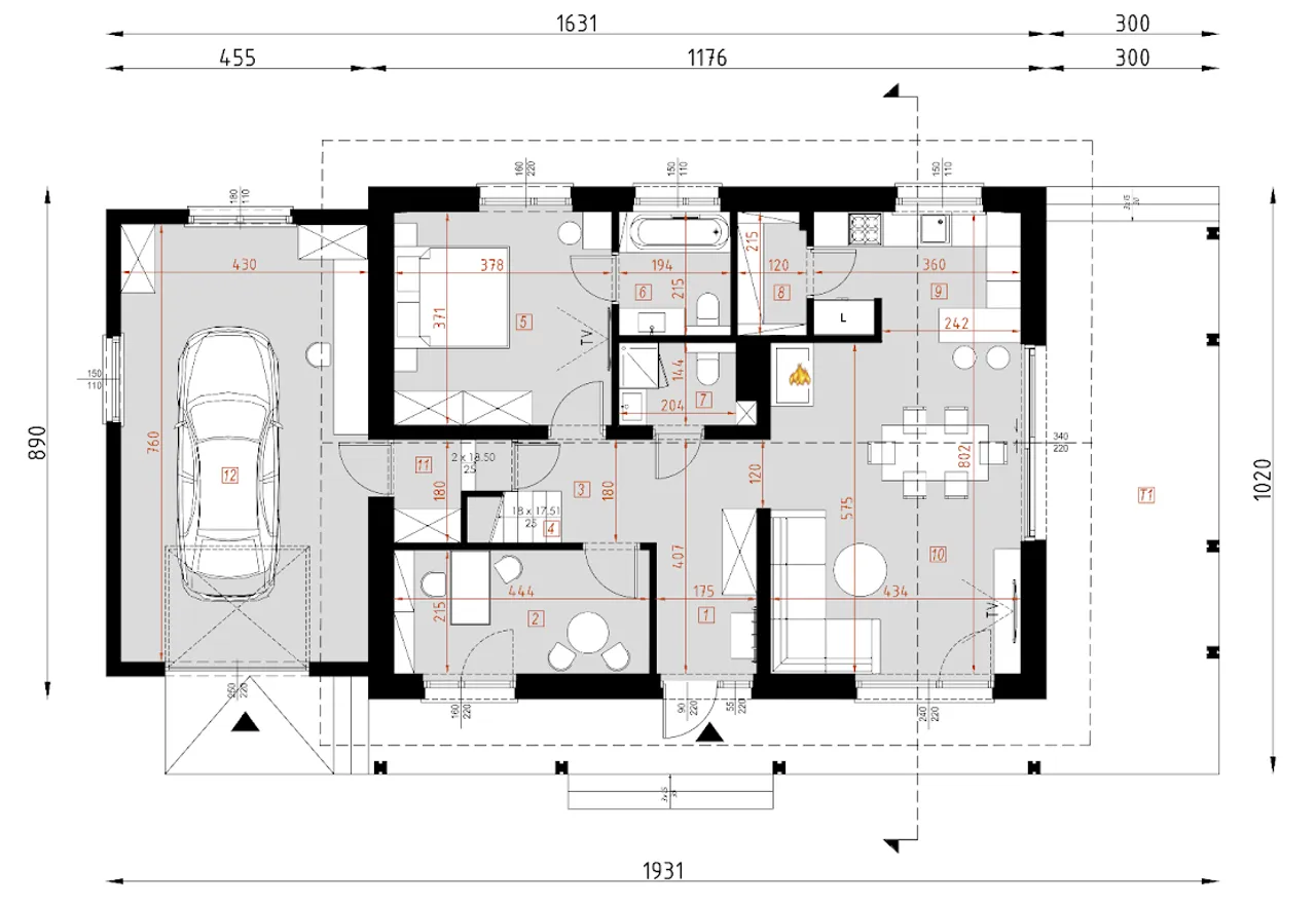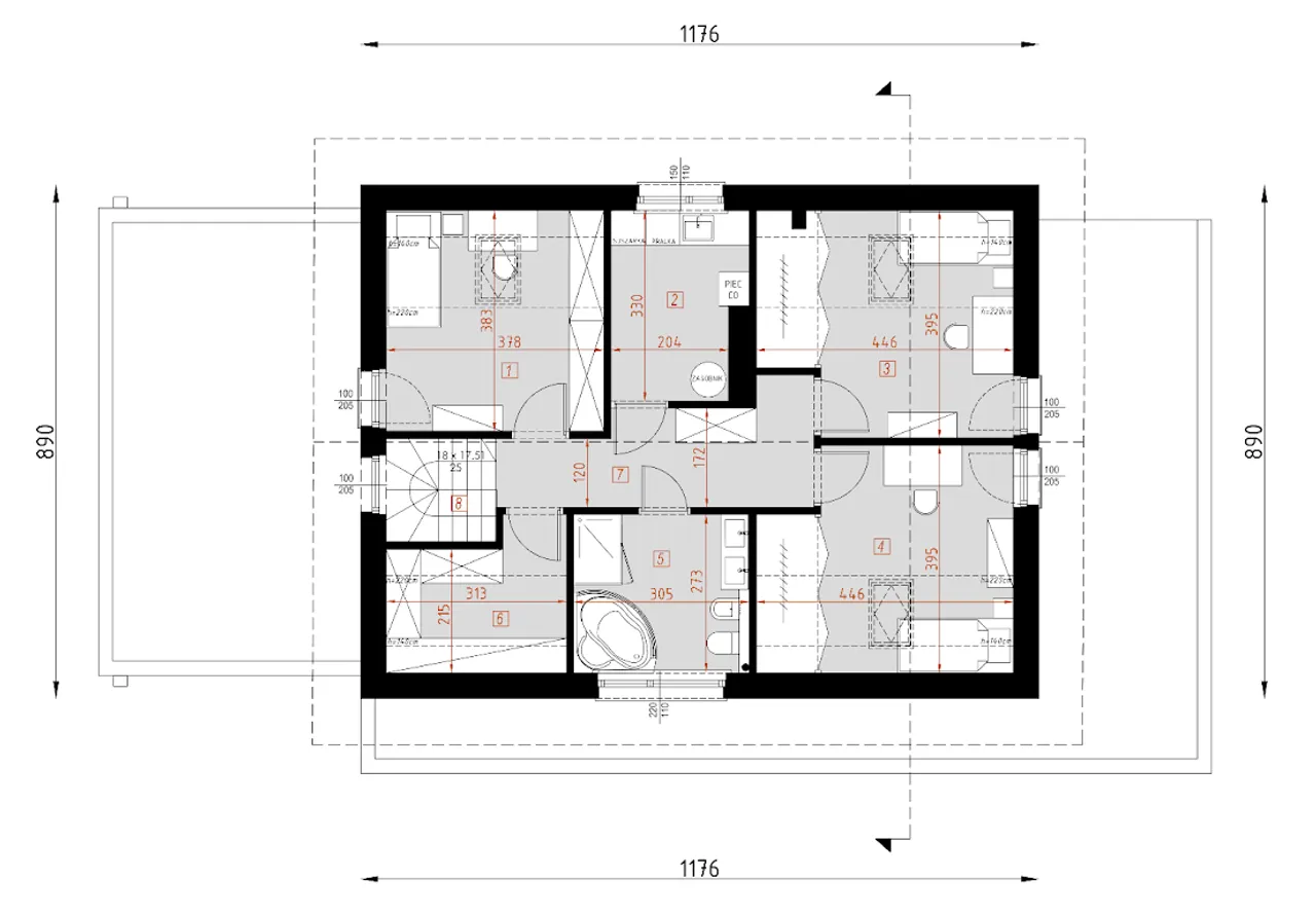 Wypełnij formularz i otrzymaj rysunki w pdf z dokładnymi wymiarami budynku i pomieszczeń (długość, szerokość, wysokość) dla projektu D333B - WT2021