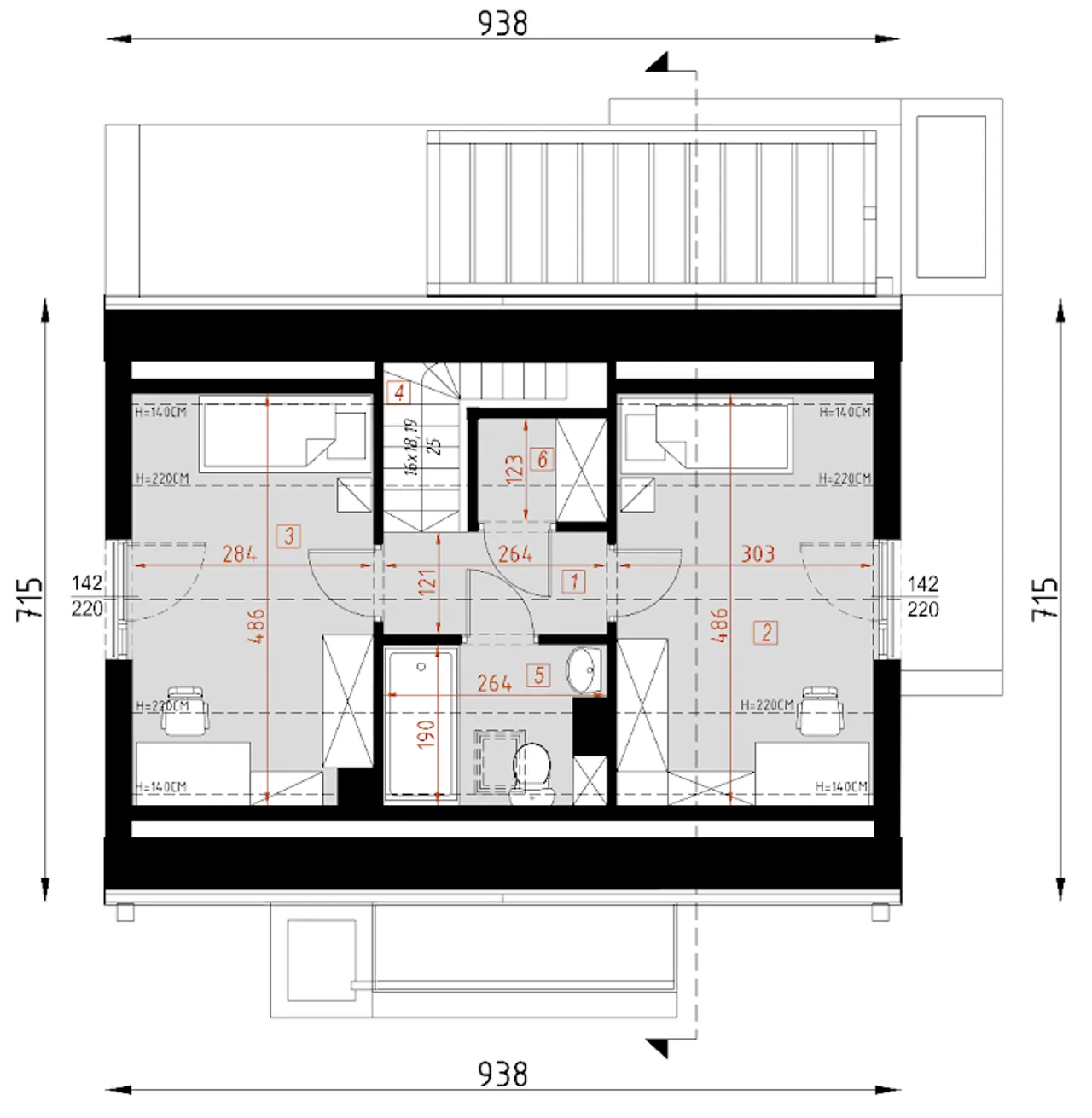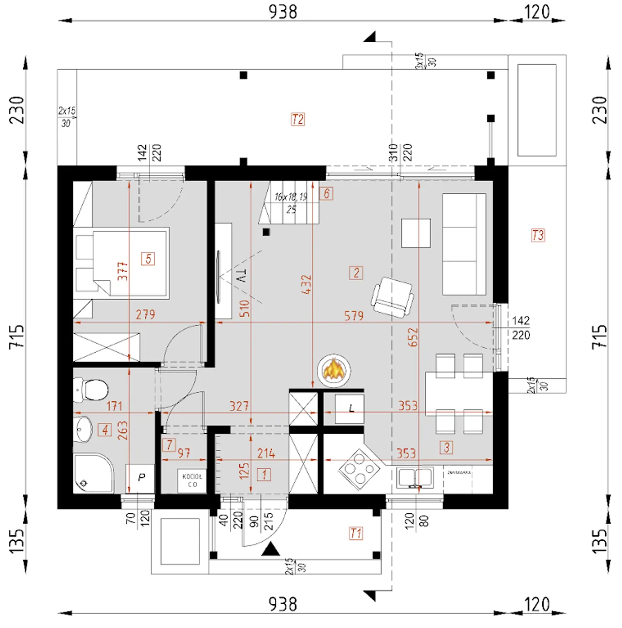 Wypełnij formularz i otrzymaj rysunki w pdf z dokładnymi wymiarami budynku i pomieszczeń (długość, szerokość, wysokość) dla projektu D335 - WT2021