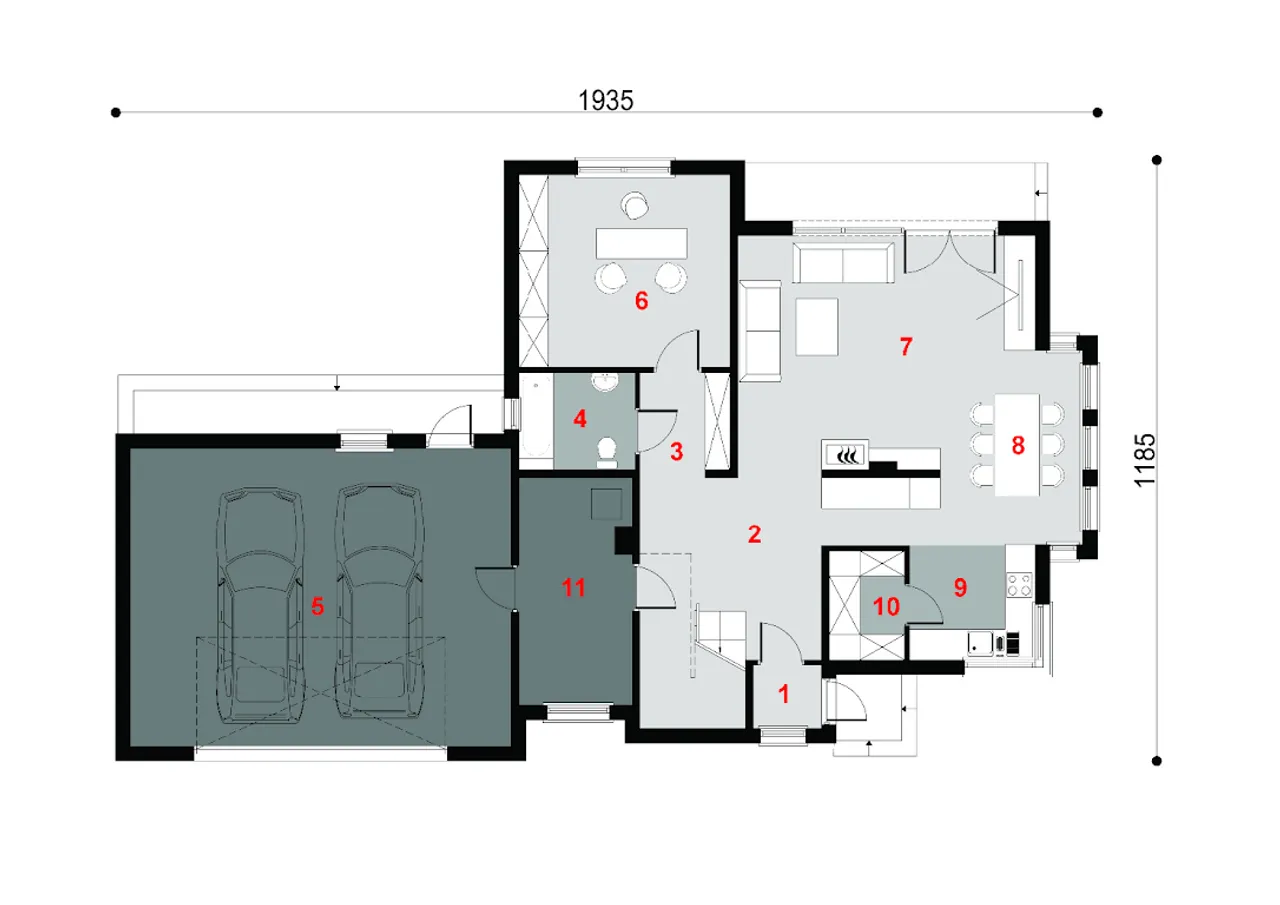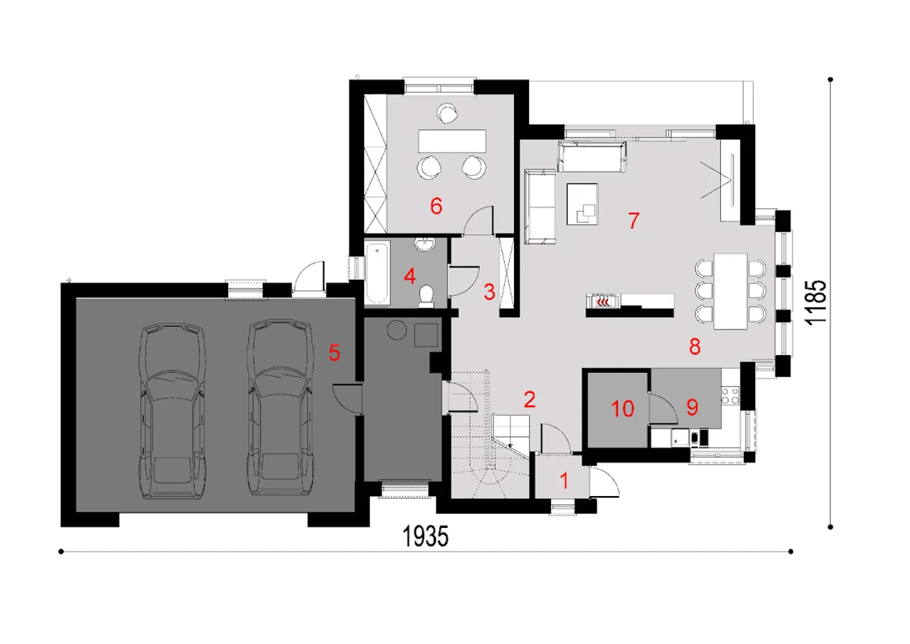 Nowoczesny i elegancki. Widzę, że jest tu zaprojektowany dwustanowiskowy garaż, to zdecydowanie na plus. Nie podoba mi się tylko taras. Mógłby być zdecydowanie większy.