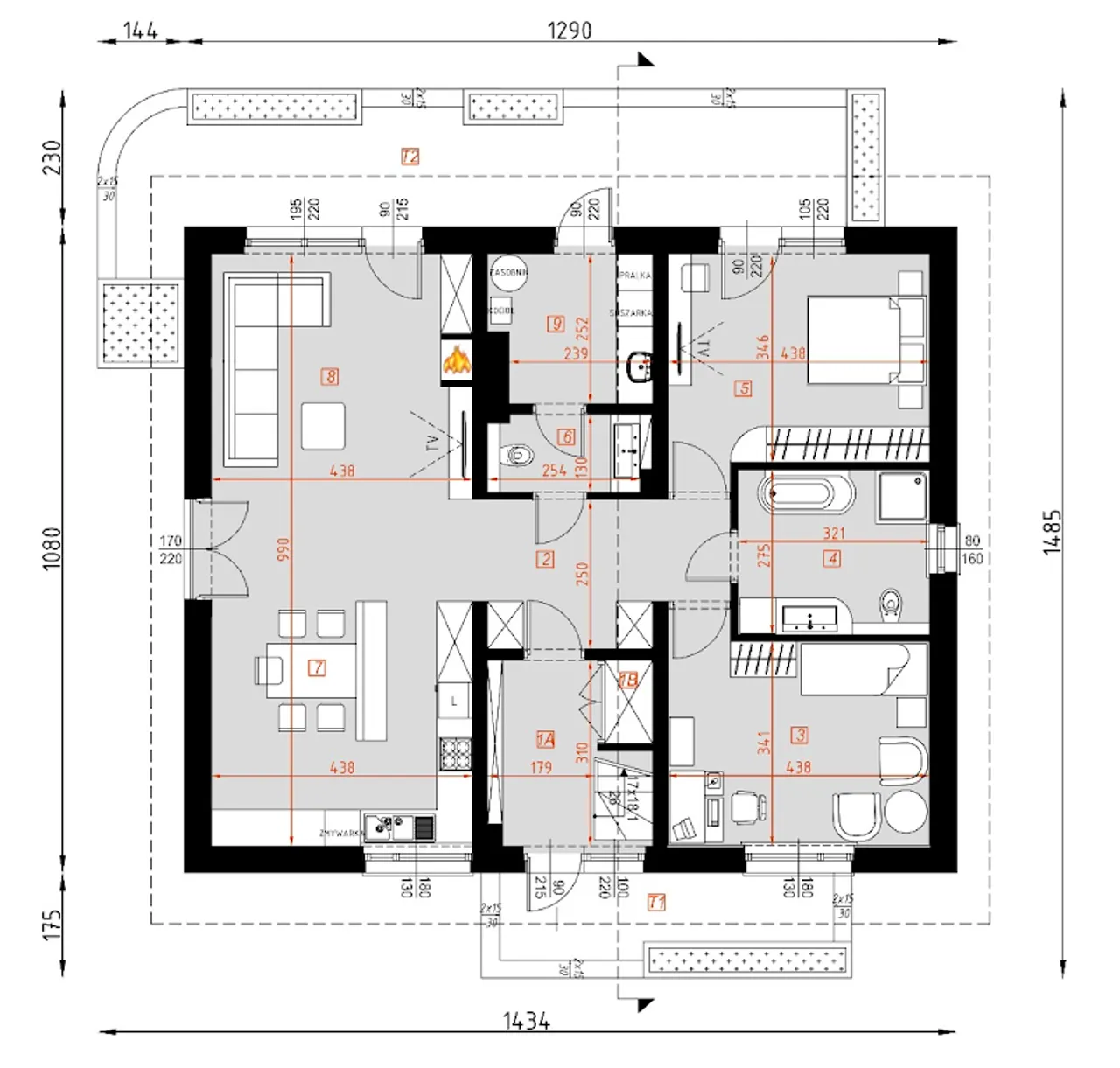 Kupując projekt w technologii murowanej powinieneś budować dom murowany. Zupełna zmiana technologii na szkieletową wymaga przeprojektowania całego budynku ( zmieniają się obciążenia, fundamenty, konstrukcja dachu). Wydamy zgodę na takie przeprojektowanie jednak wiążę się to z dużymi kosztami. Istnieją firmy wykonawcze, które podejmują się zmiany technologii budowy bezpłatnie przy skorzystaniu z ich usług wykonawczych. Zdarza się, że pracownia architektoniczna przygotowuje warianty konkretnego projektu przewidując także inne technologie. Prosimy o sprawdzenie czy istnieje poszukiwana wersja projektu, w zakładce - warianty projektu.