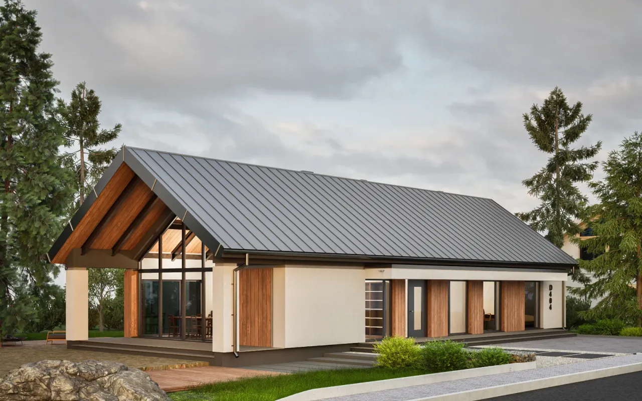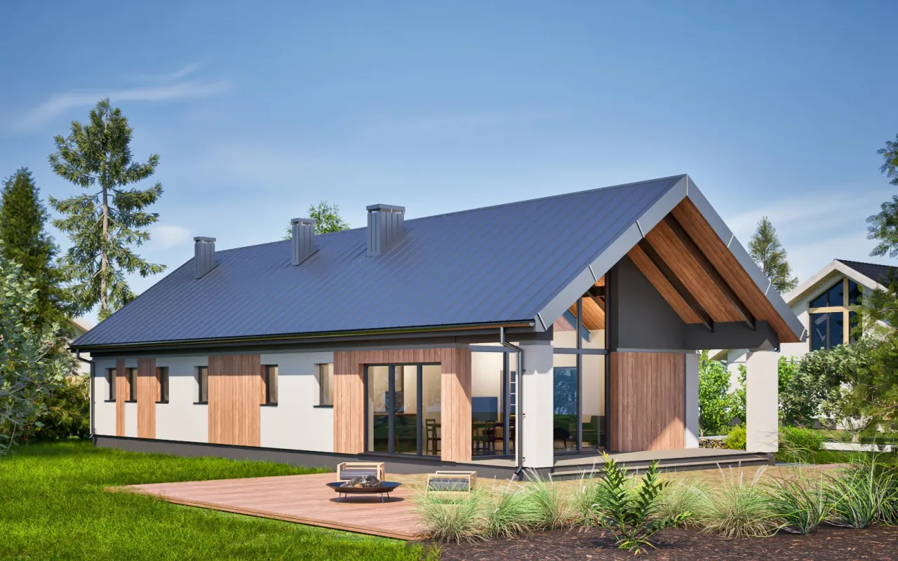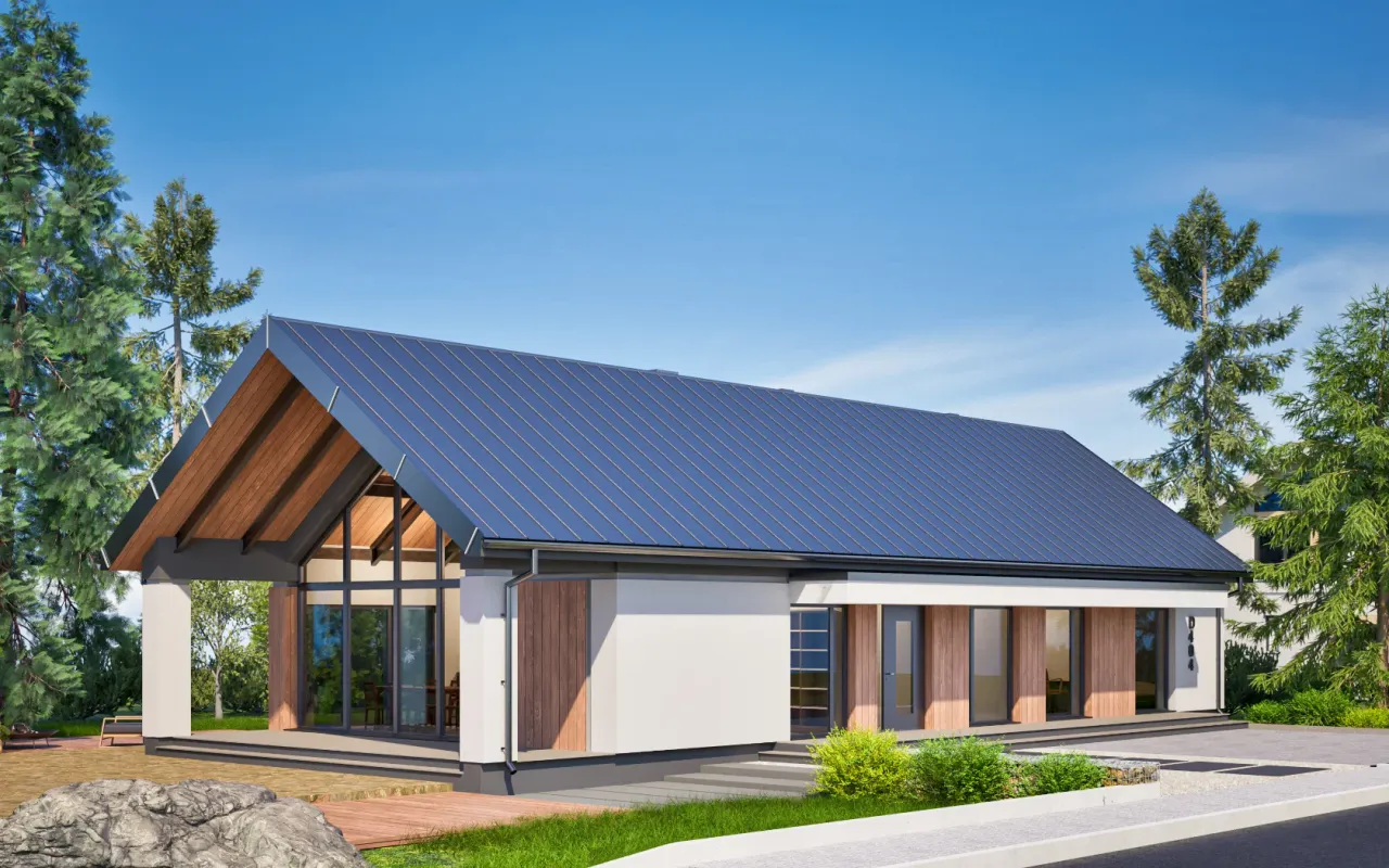 Projekt D404 - WT2021 robi wrażenie. Jego nowoczesna bryła przyciąga wzrok. Przestronny salon wygląda zachęcająco. Duże okna dodają mu charakteru. Dach prezentuje się solidnie. Przemyślany układ pomieszczeń zachwyca praktycznością. Rozważam zakup projektu i budowę tego domu.
