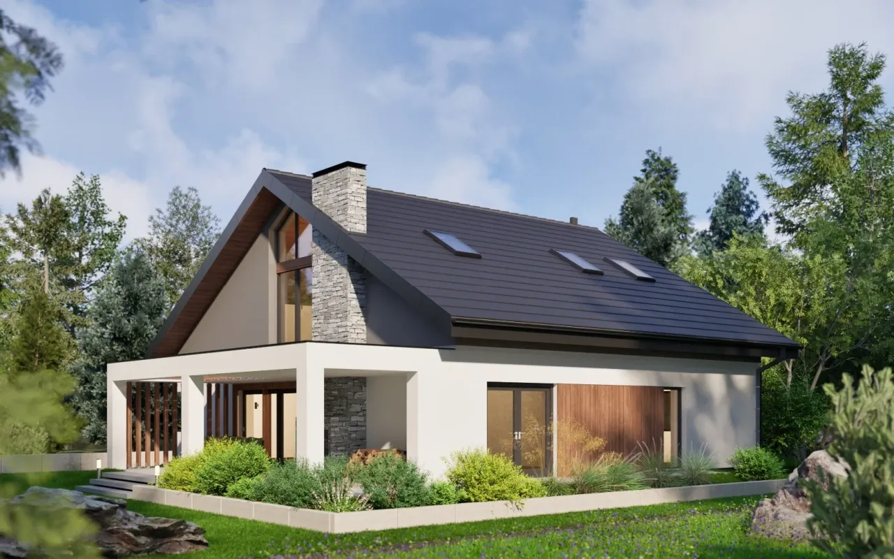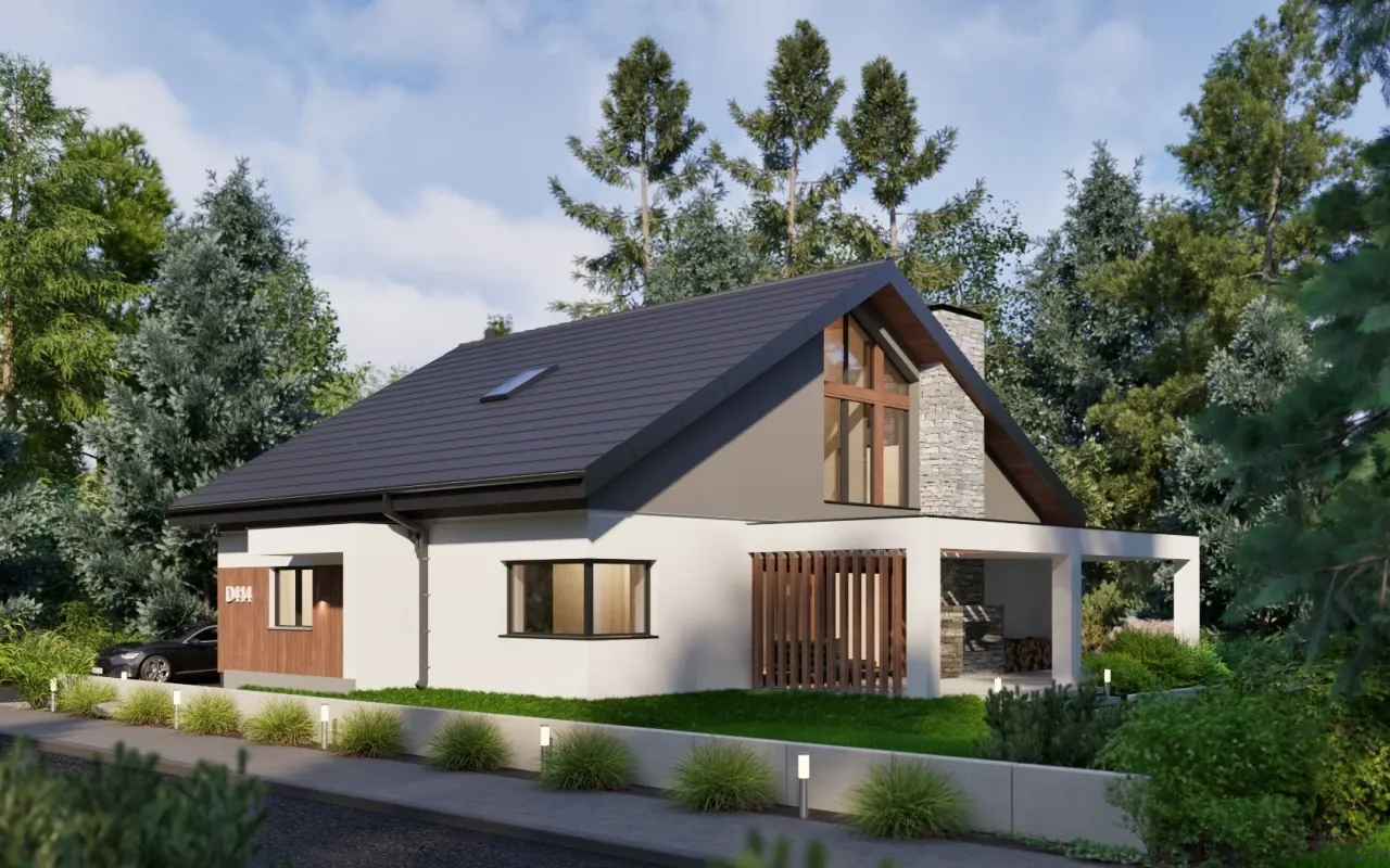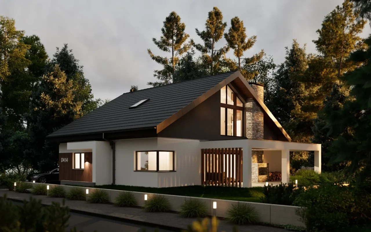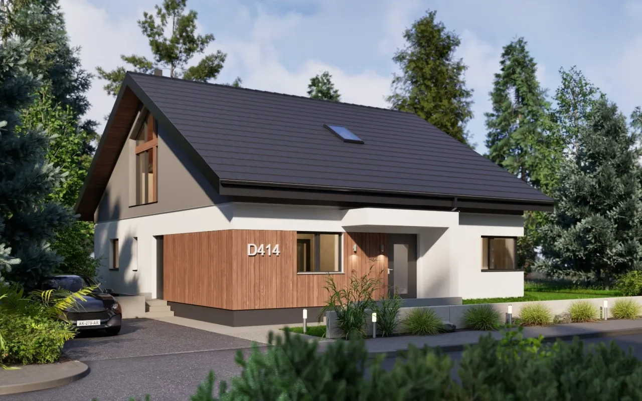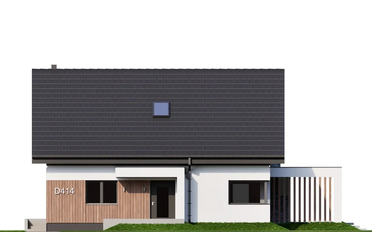 Projekt domu D414 - WT2021 zaskakuje elegancją. Fasada przyciąga wzrok. Architektura jest nowoczesna. Wnętrza są przestronne. Projekt zachwyca prostotą. Układ pomieszczeń jest funkcjonalny. Design jest unikalny. Przyciąga ciekawą bryłą. Ten dom budzi zainteresowanie. Biorę pod uwagę zakup projektu i budowę tego domu.
