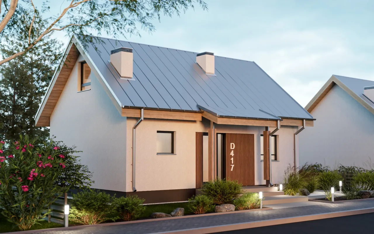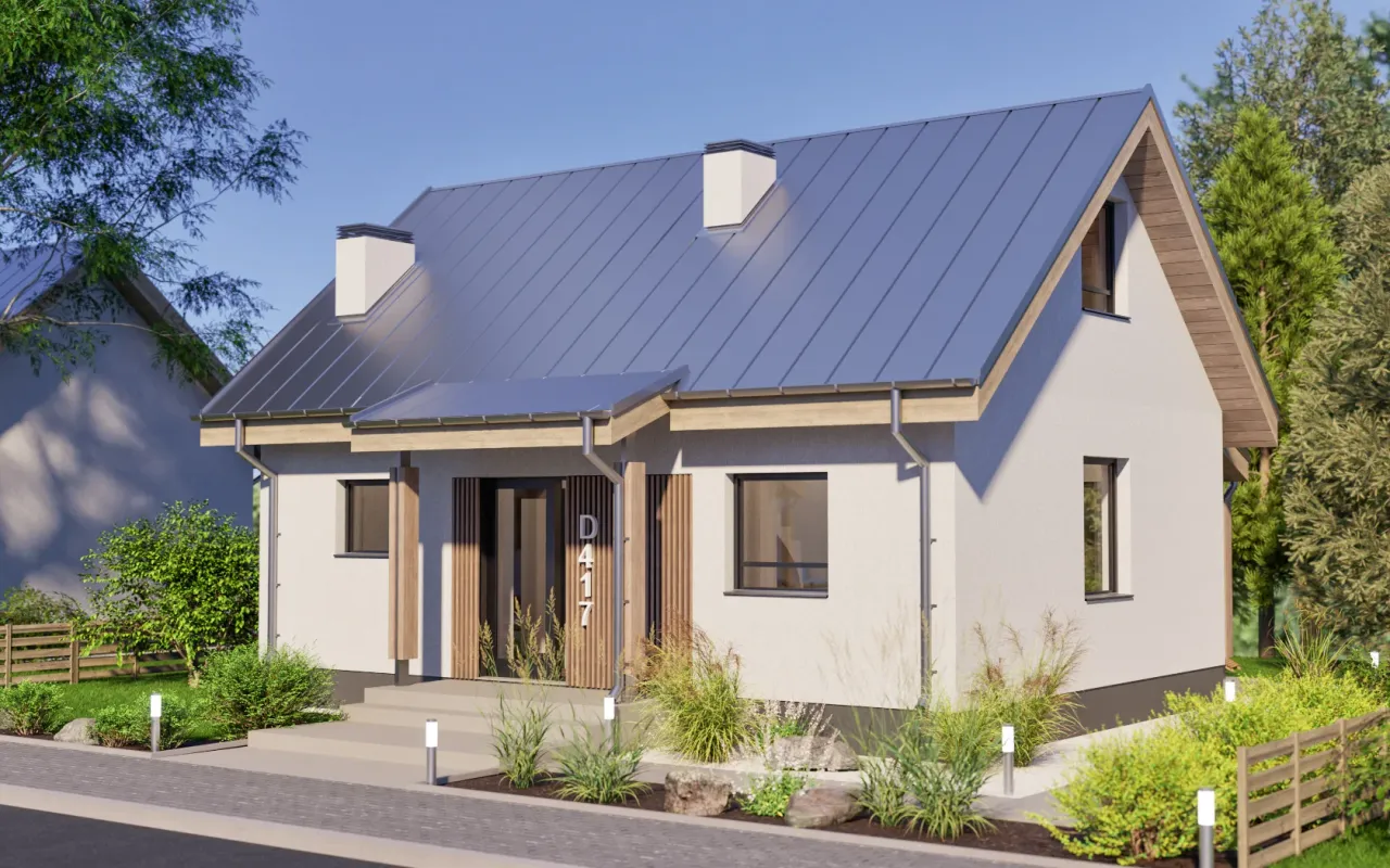 Opis projektu domu D417 - WT2021 Paulinka z ogrzewaniem na pellet wersja drewniana